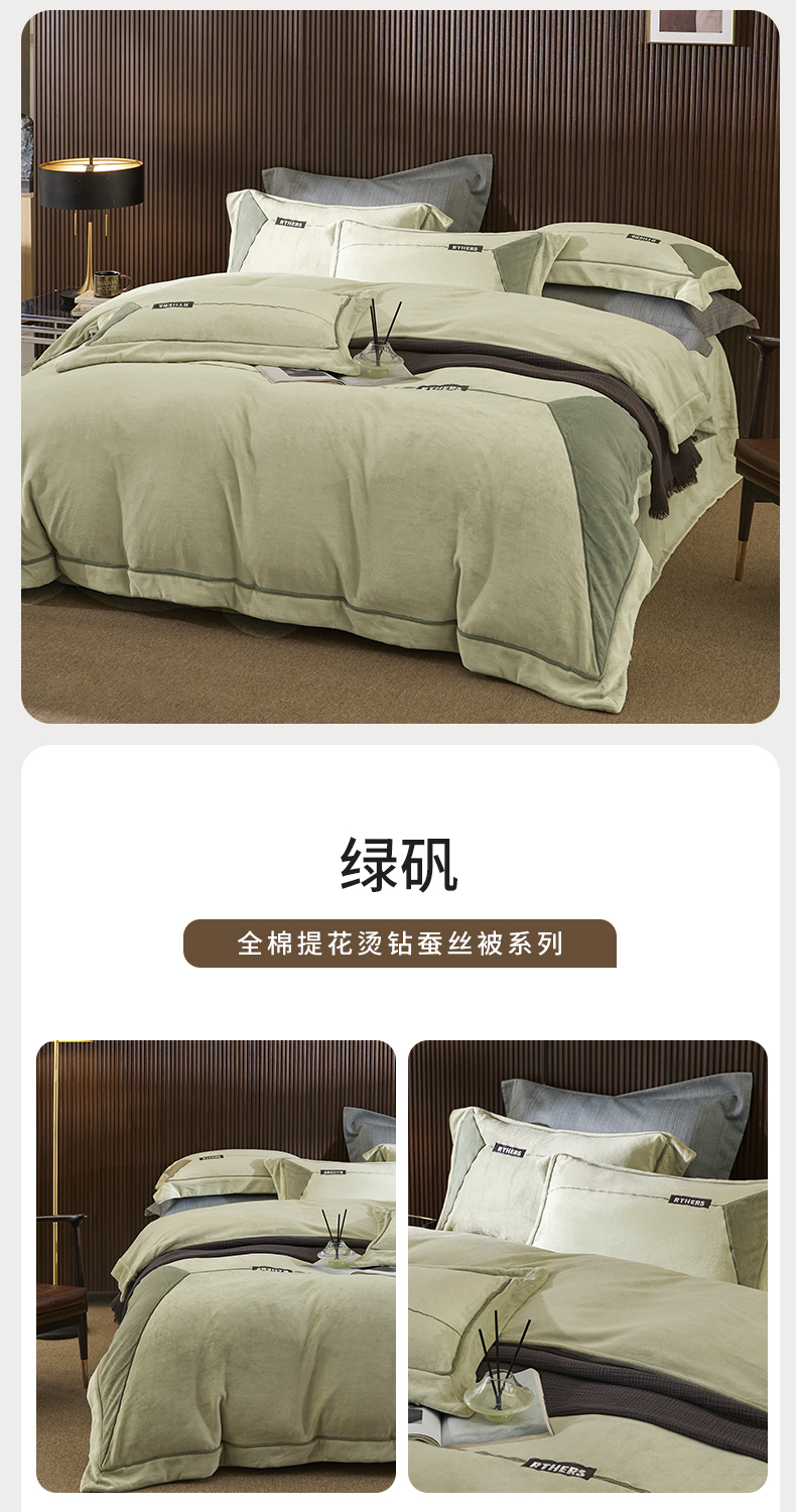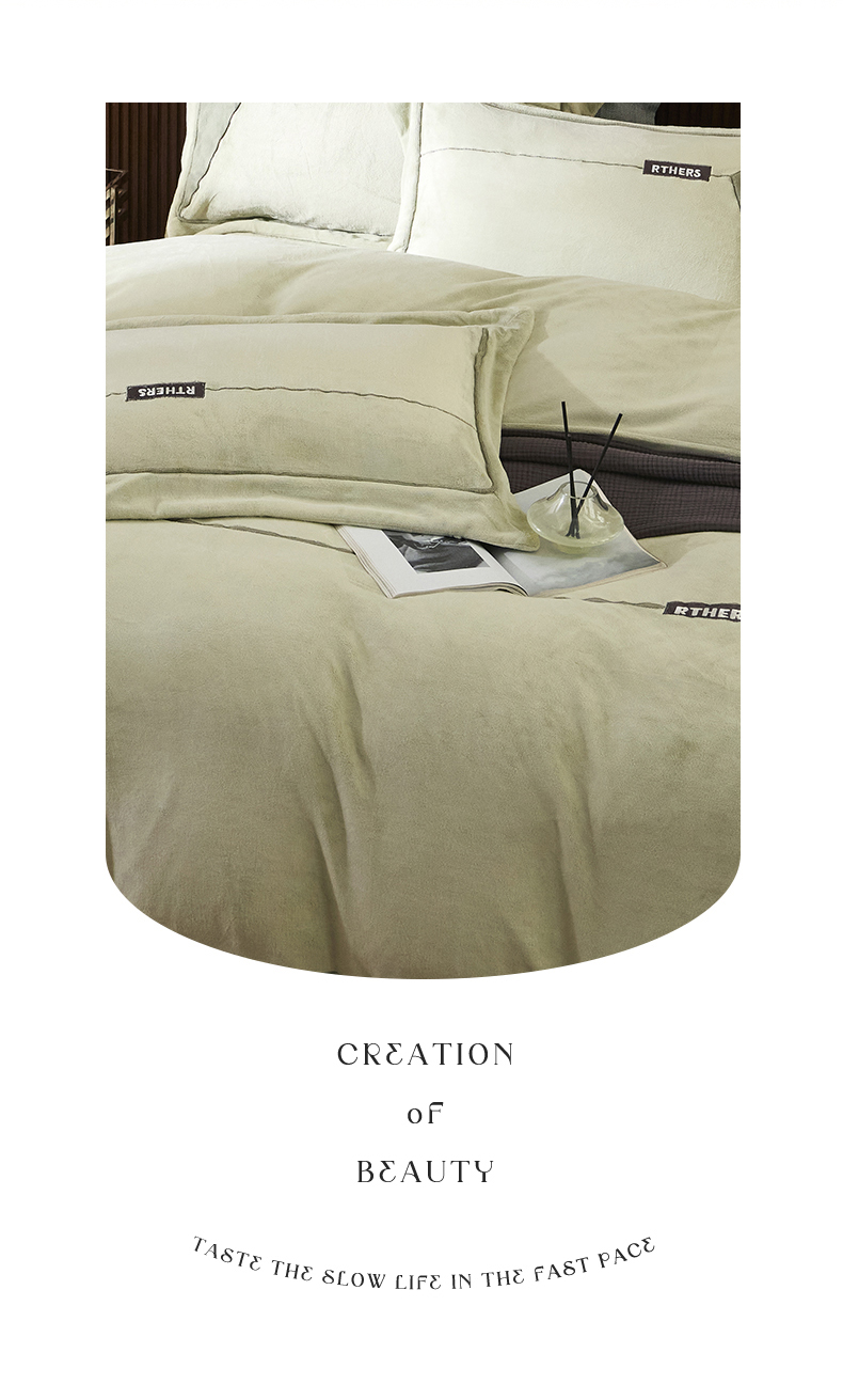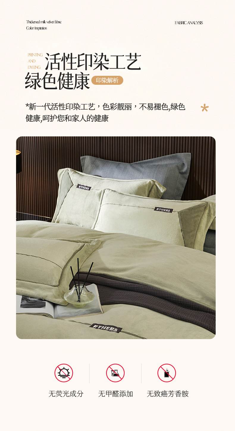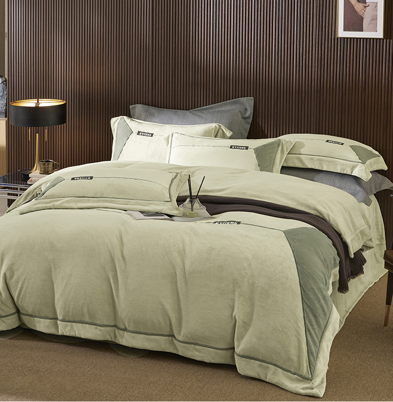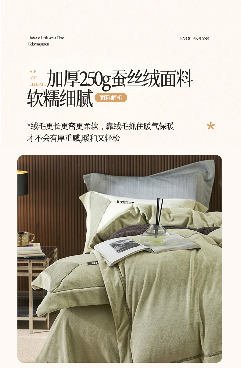 名品优仓 2024新款高克重牛奶绒刺绣四件套-巴伦西亚 绿矾
