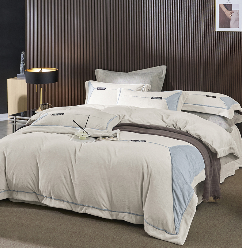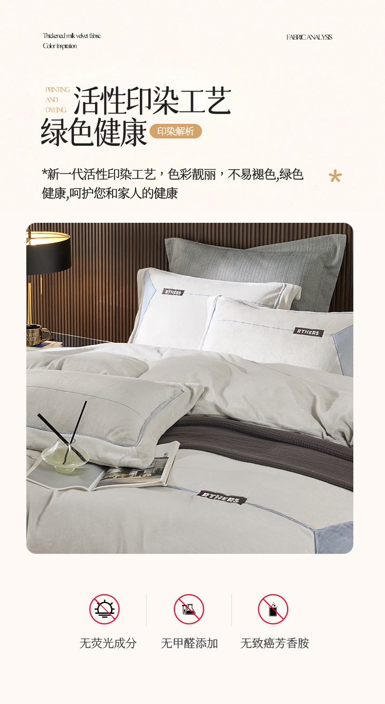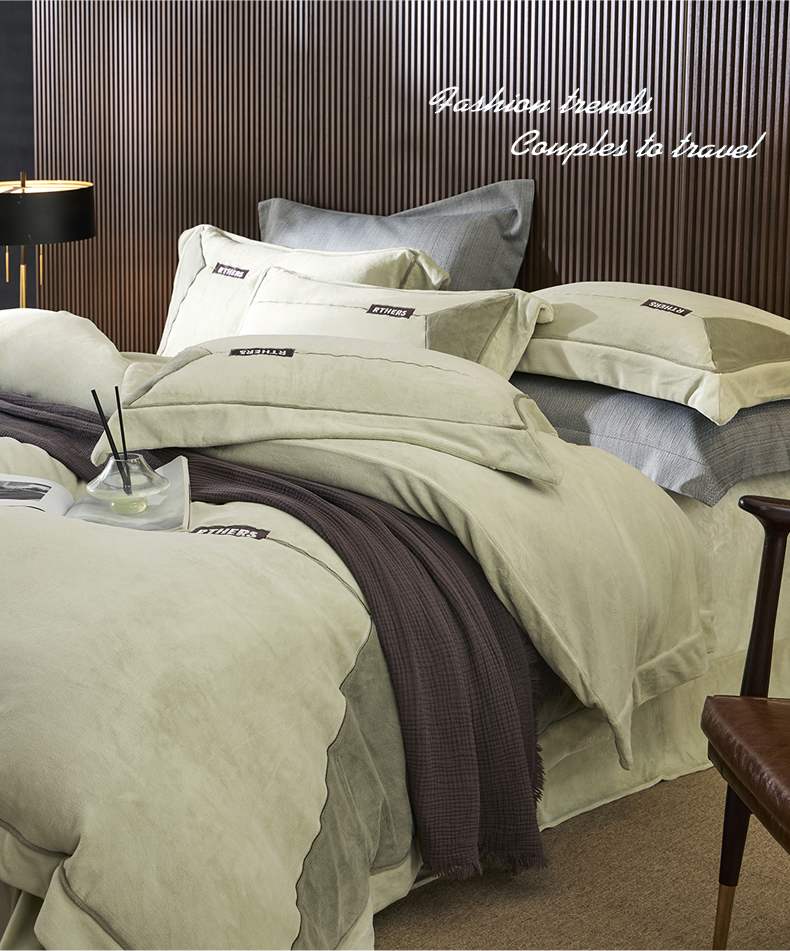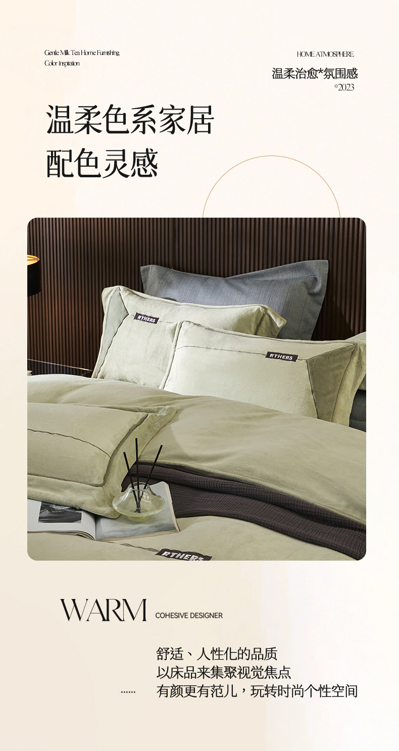 名品优仓 2024新款高克重牛奶绒刺绣四件套-巴伦西亚 绿矾