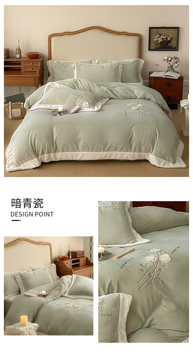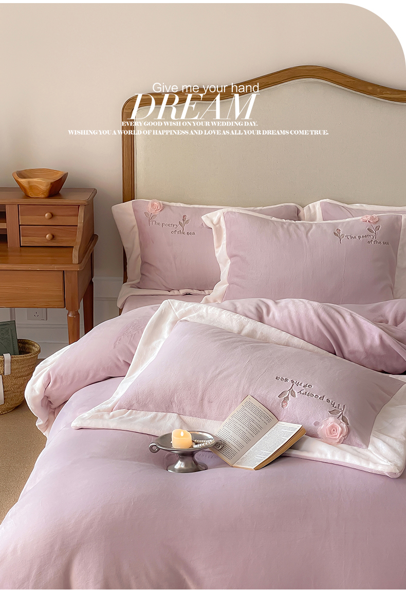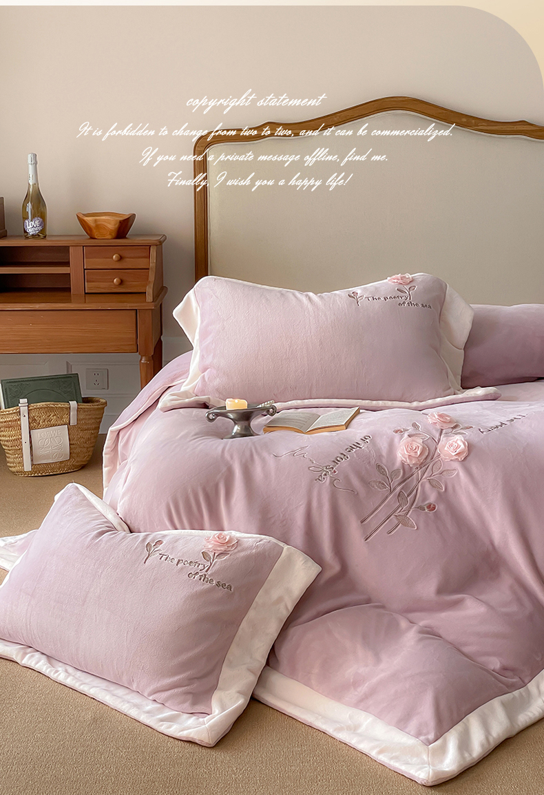 名品优仓 2024新款高克重牛奶绒立体绣花四件套-爱丽莎 木槿柴
