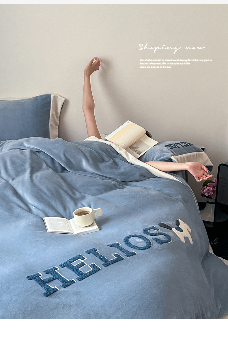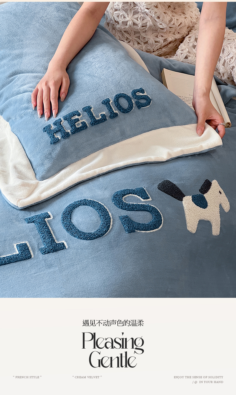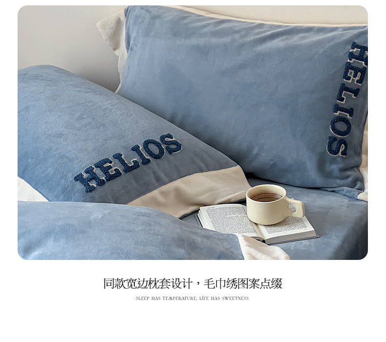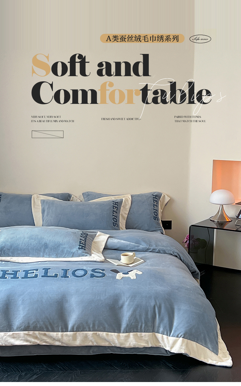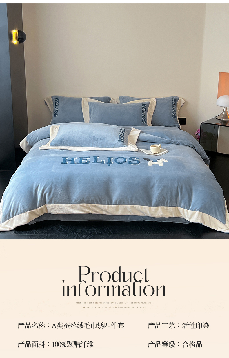 商品名称:名品优仓 2024新款高克重牛奶绒毛巾绣四件套-莫安迪 莫安迪-天真蓝