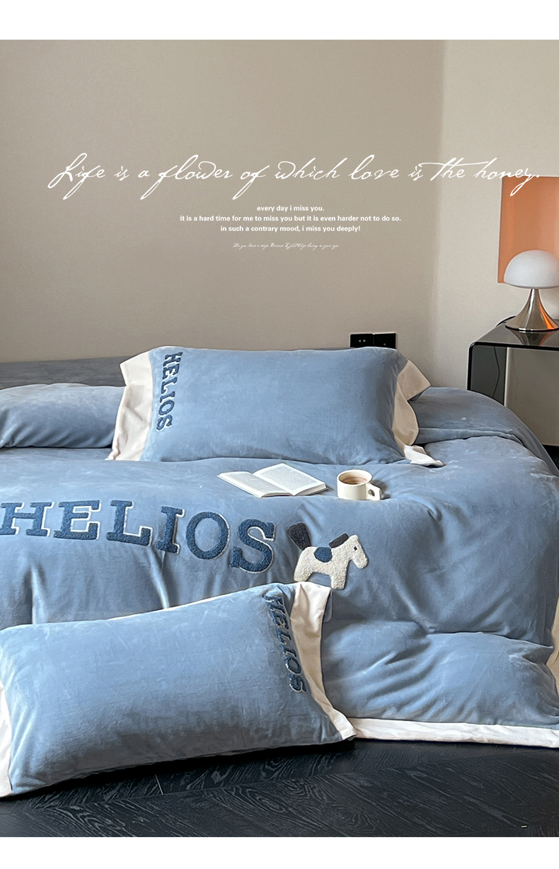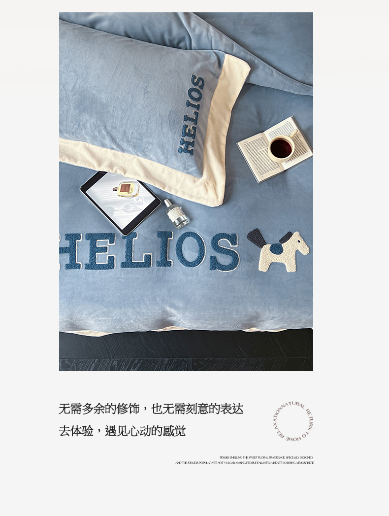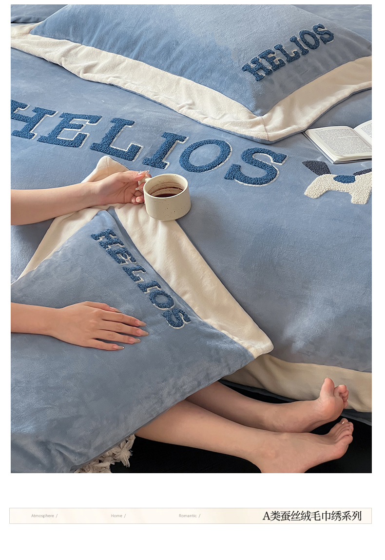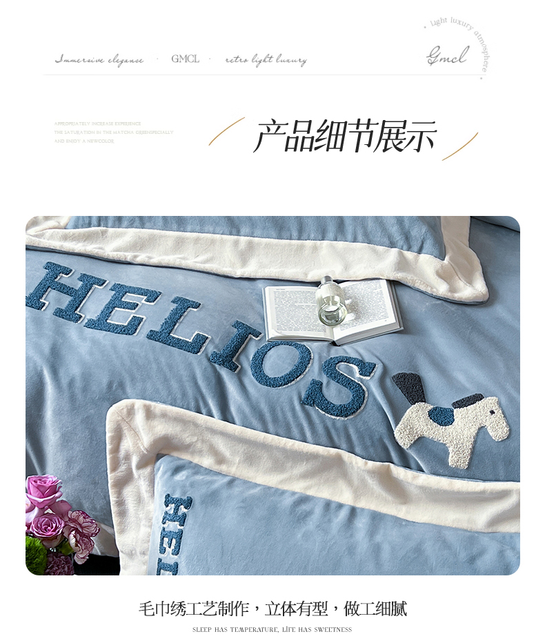 名品优仓 2024新款高克重牛奶绒毛巾绣四件套-莫安迪 莫安迪-天真蓝