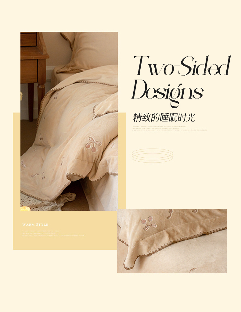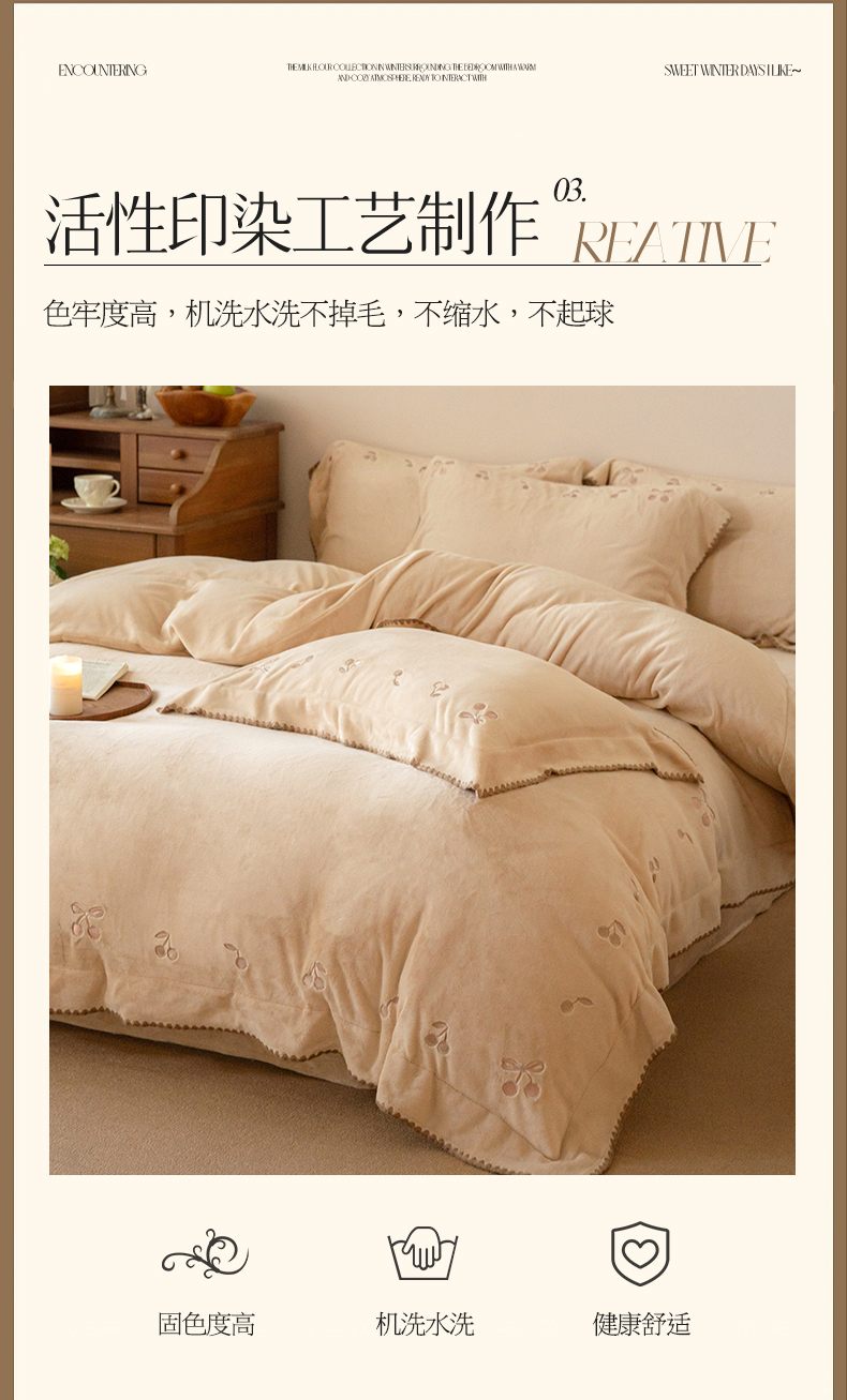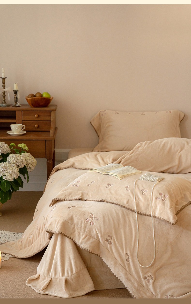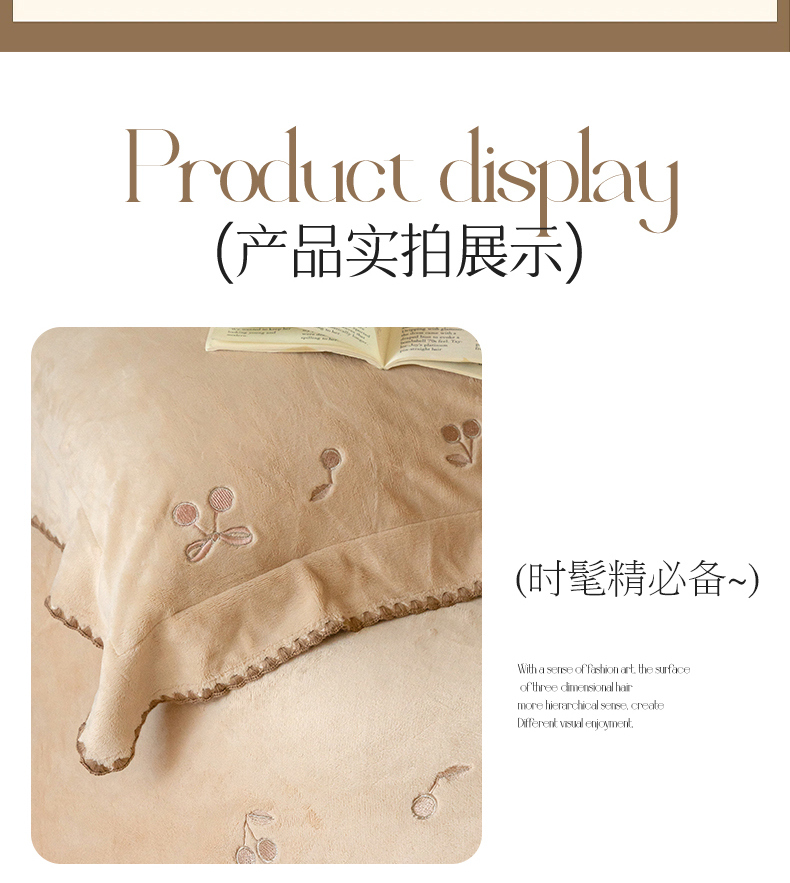 名品优仓 2024新款高克重牛奶绒绣花四件套-樱桃之玥 樱桃之玥-杏咖