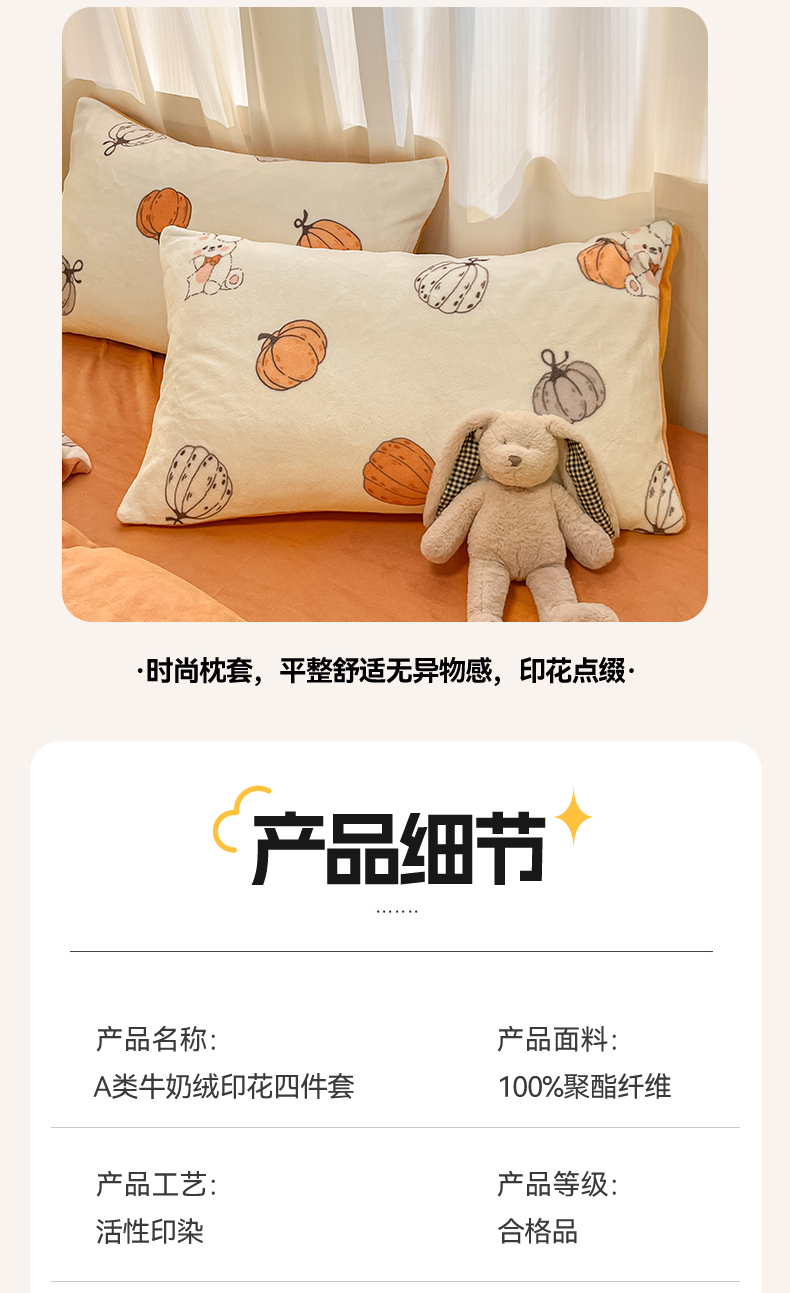 商品名称:本制 2025新款B类牛奶绒印花四件套 拥有