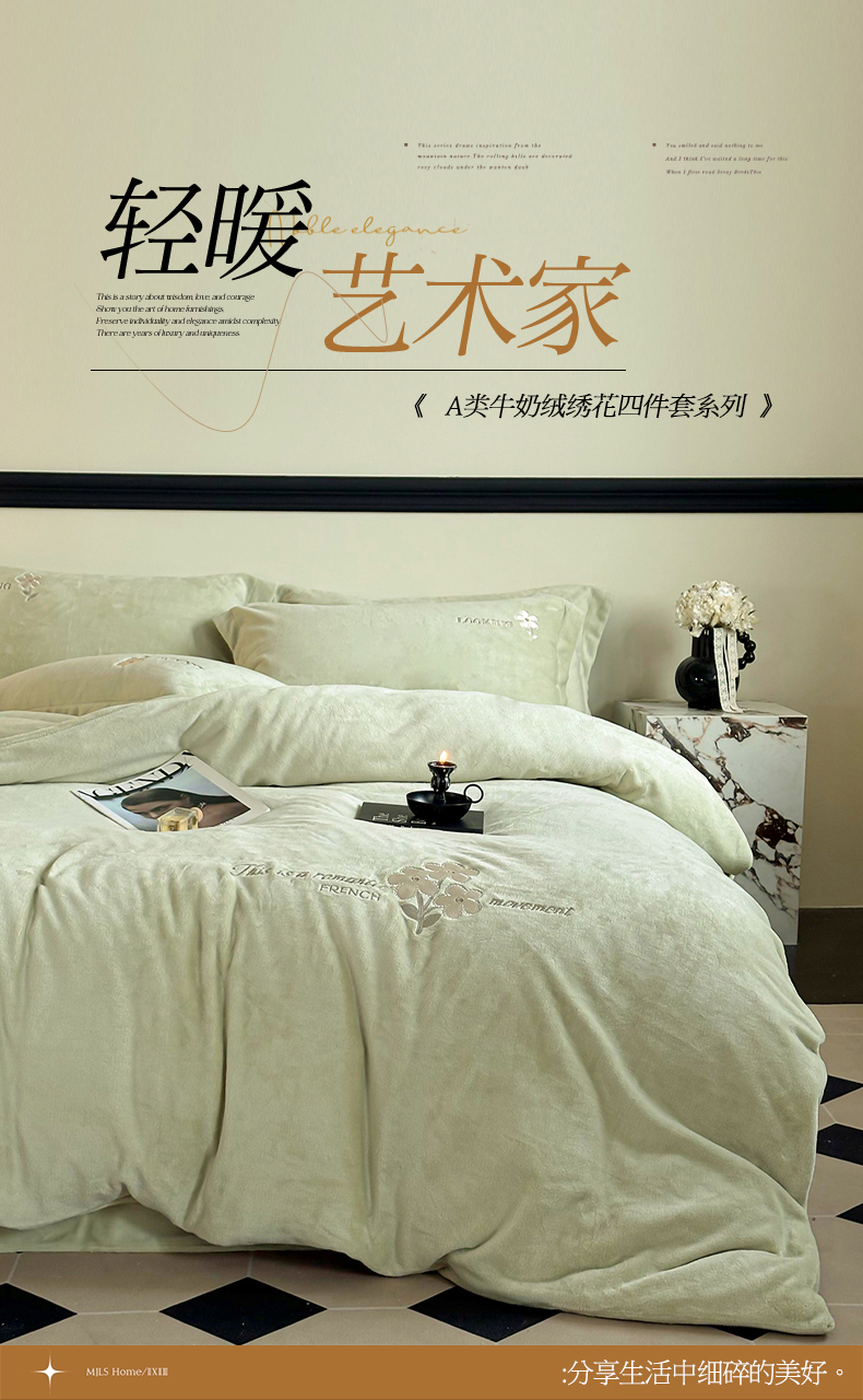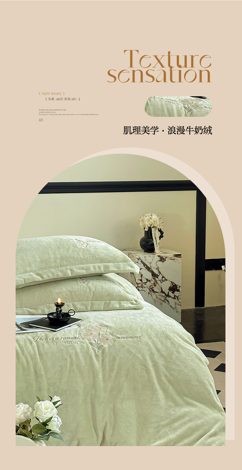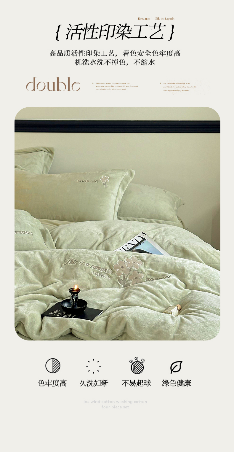 名品优仓 2024新款牛奶绒绣花四件套-米娅 绿矾