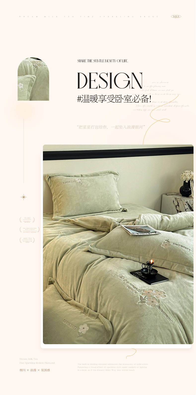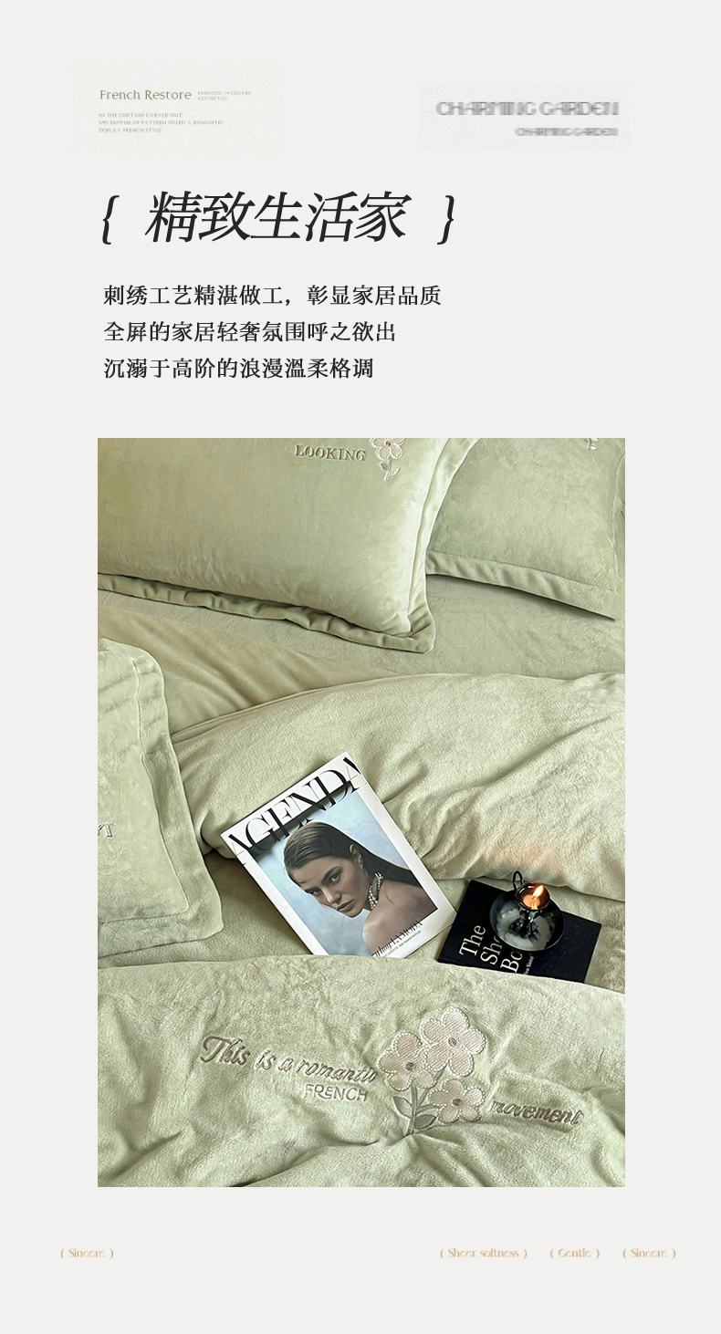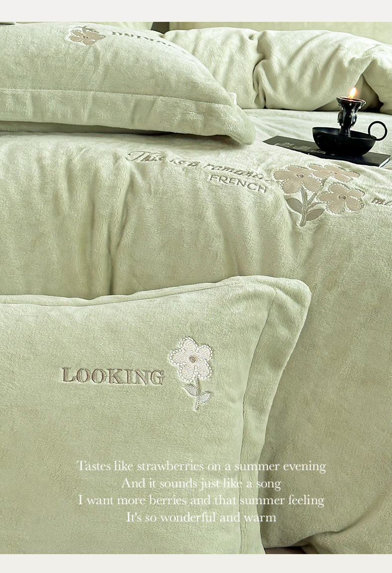 名品优仓 2024新款牛奶绒绣花四件套-米娅 绿矾