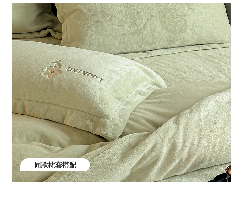 商品名称:名品优仓 2024新款牛奶绒绣花四件套-米娅 绿矾