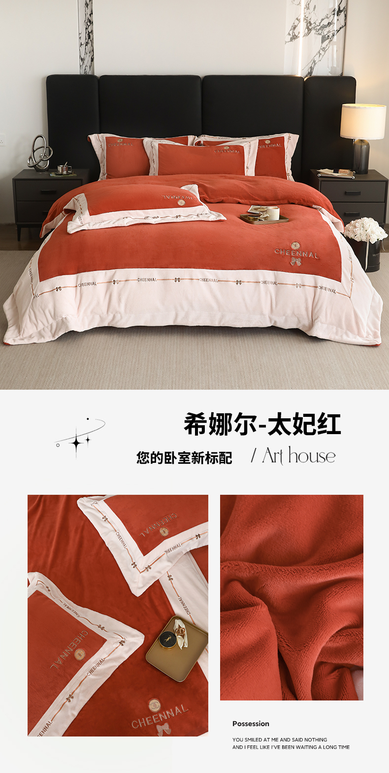 (总)名品优仓 2025新款220克牛奶绒绣花四件套-珊瑚,珊瑚-宝石蓝,珊瑚-粉色,珊瑚-姜黄,珊瑚-米杏,珊瑚-沫粉,珊瑚-杏粉
