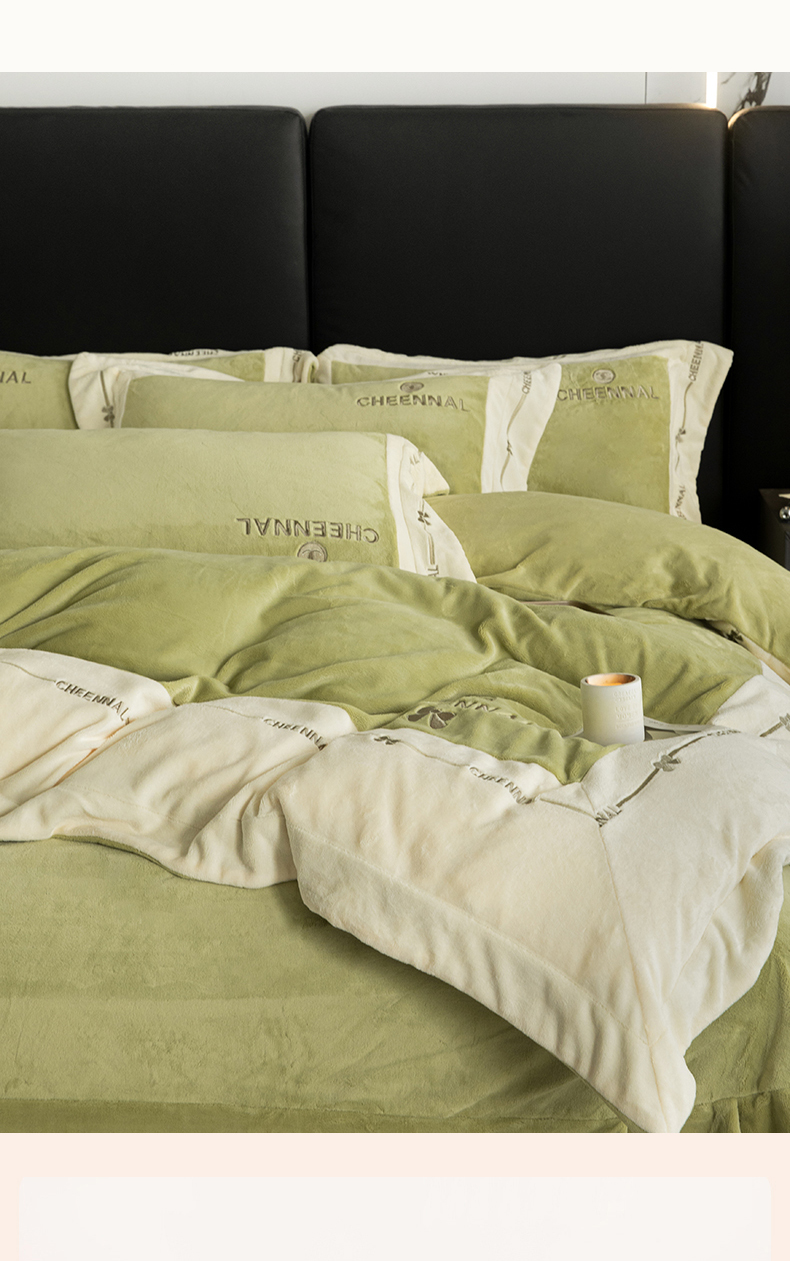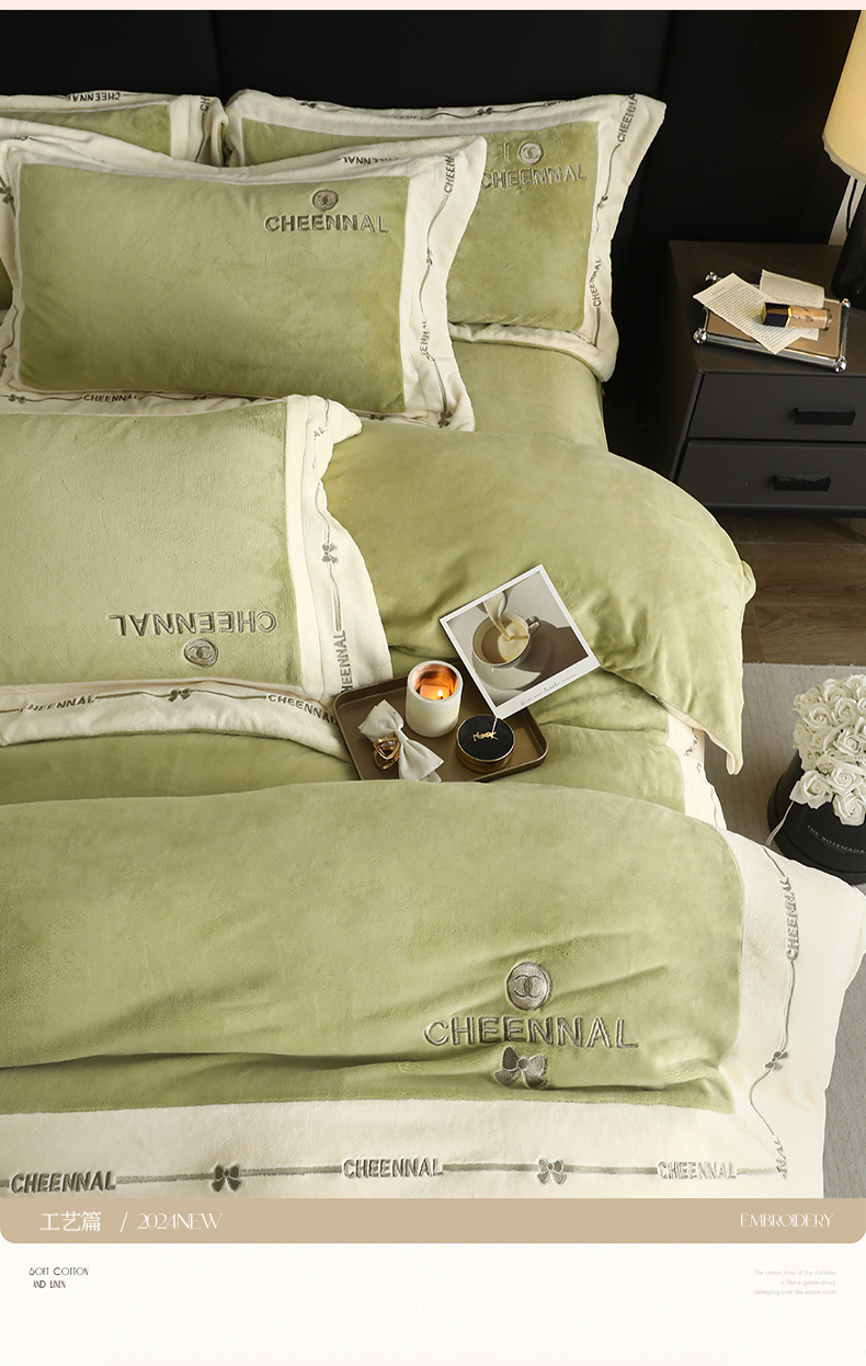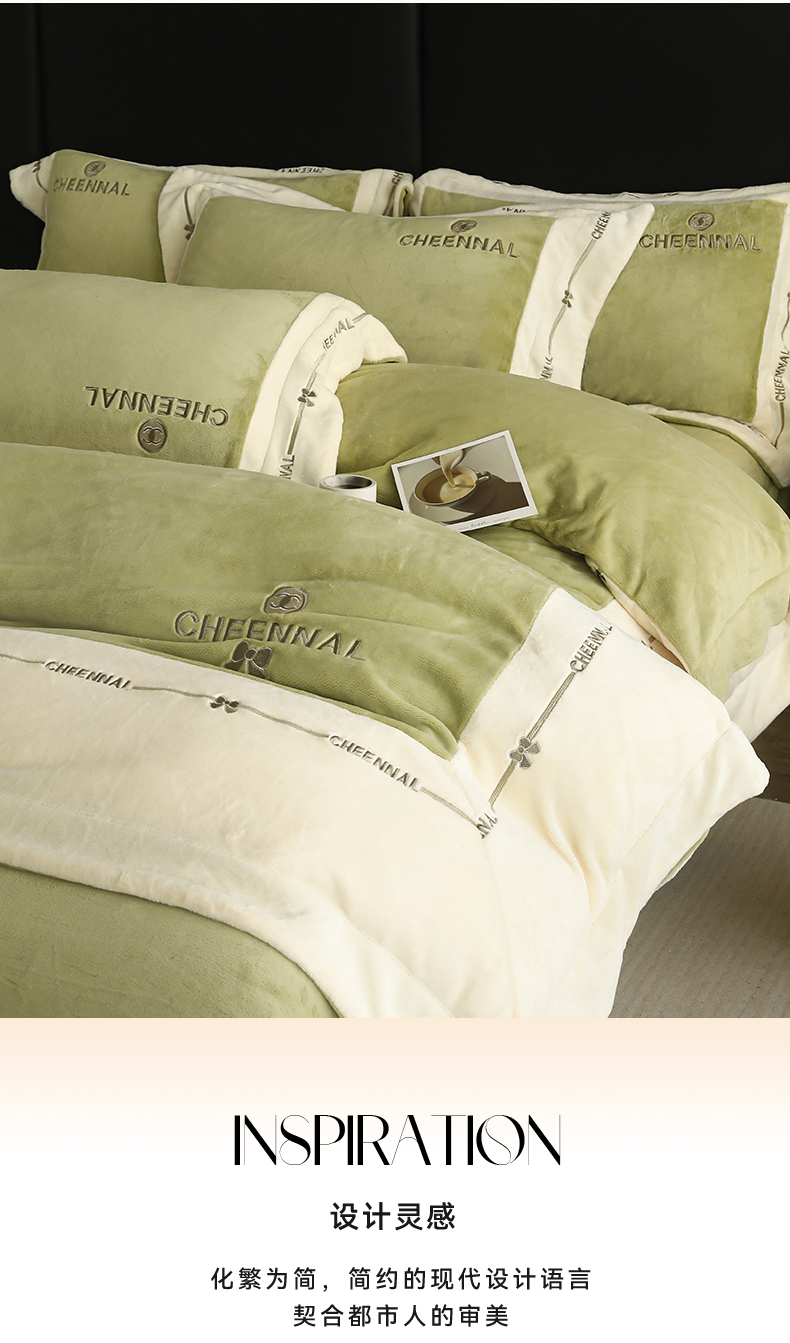 名品优仓 2024新款高克重高克重牛奶绒四件套-希娜尔 希娜尔-抹茶绿