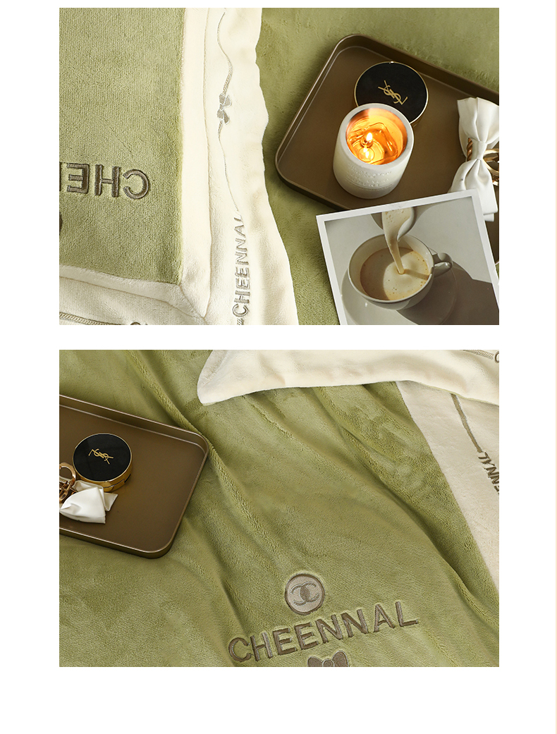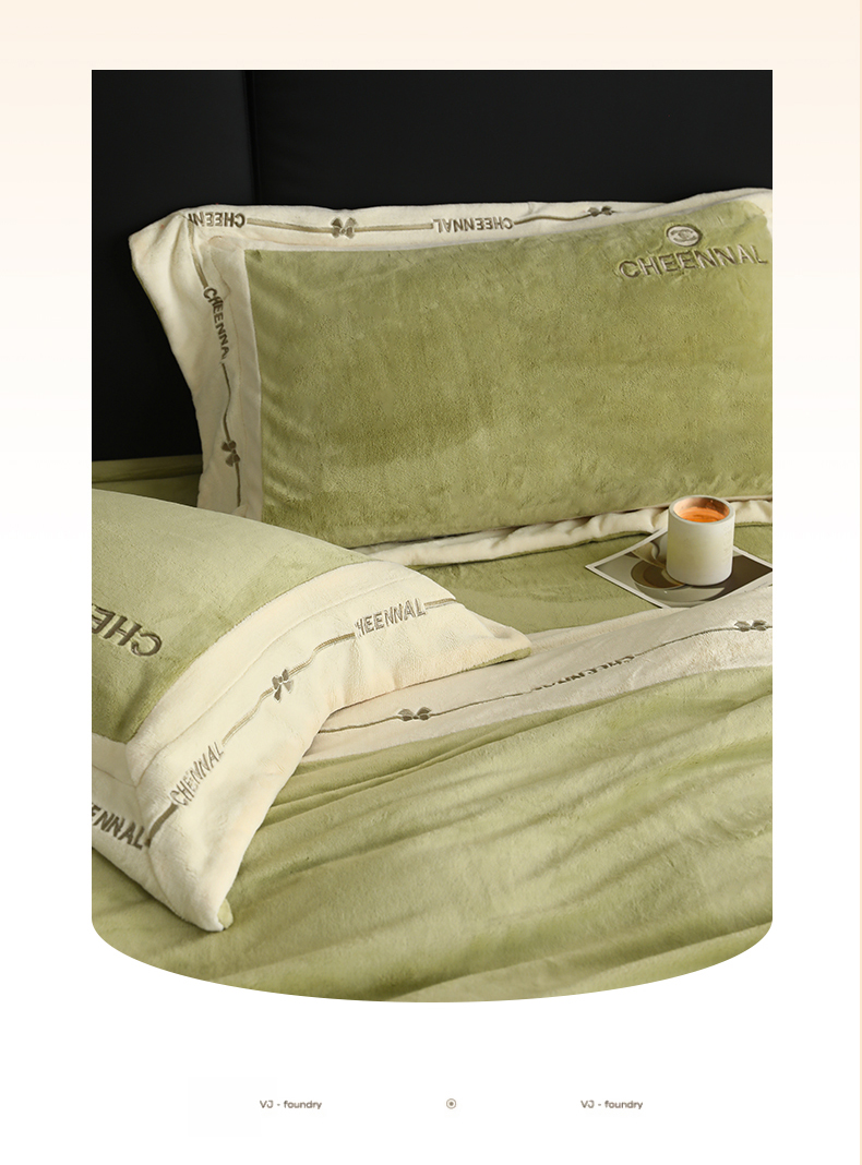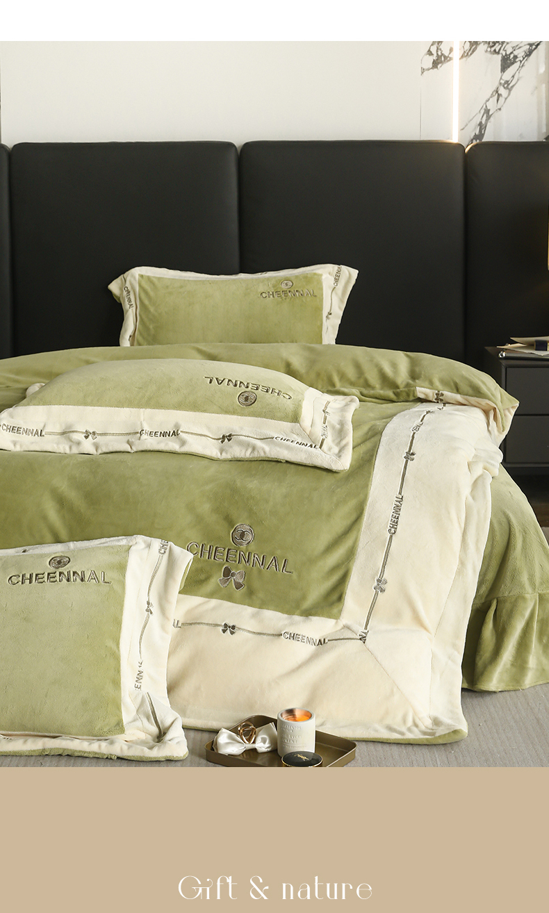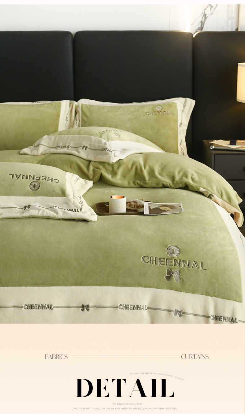名品优仓 2024新款高克重高克重牛奶绒四件套-希娜尔 希娜尔-抹茶绿