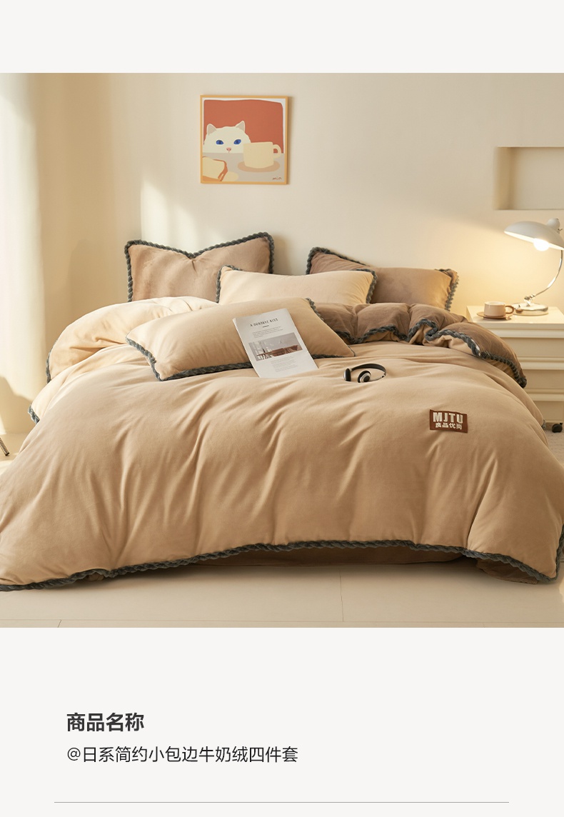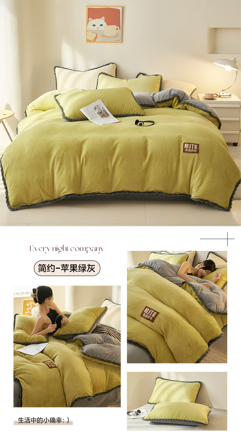 • 91家纺网 家纺一手货源 找家纺 晨曦家纺 2024新款日系简约小包边牛奶绒单被套 简约-苹果绿灰
