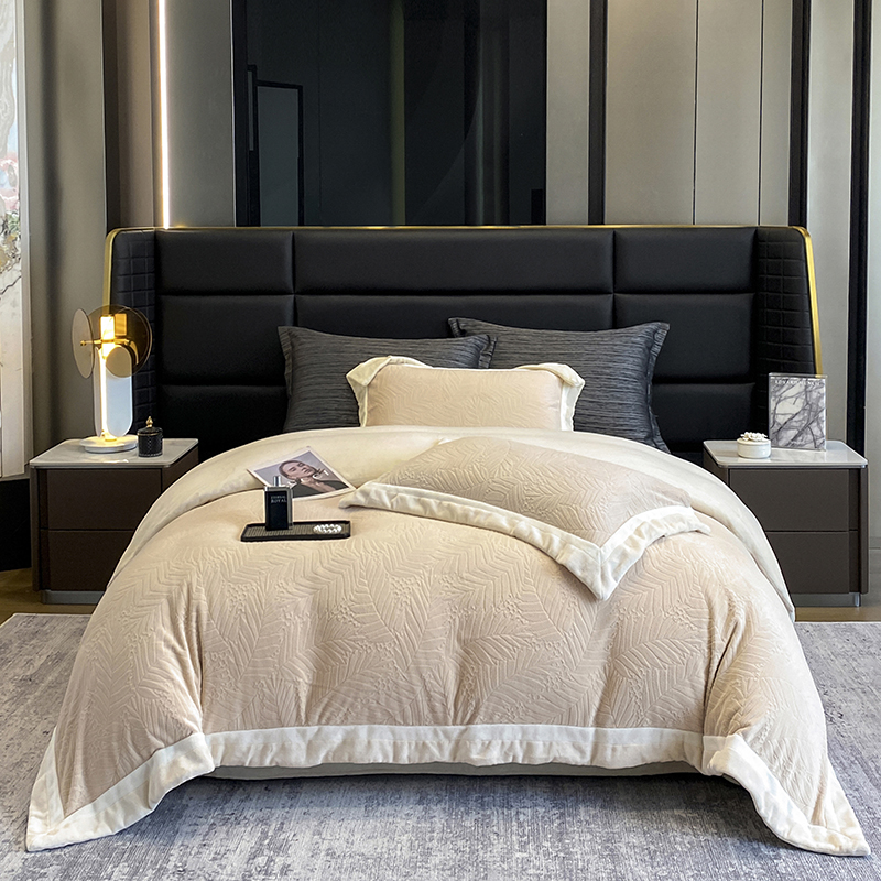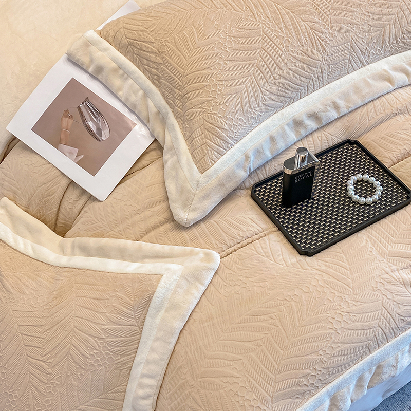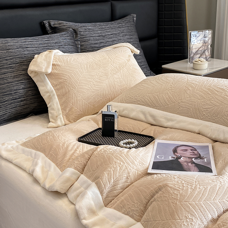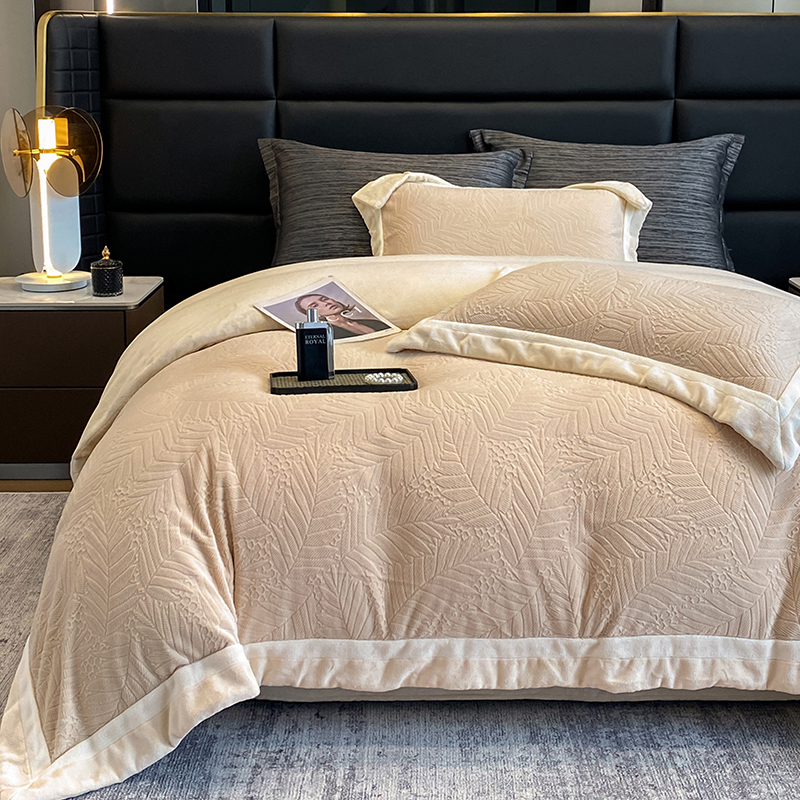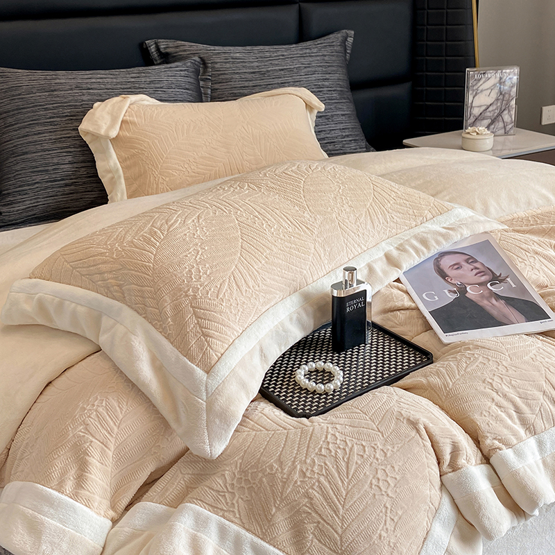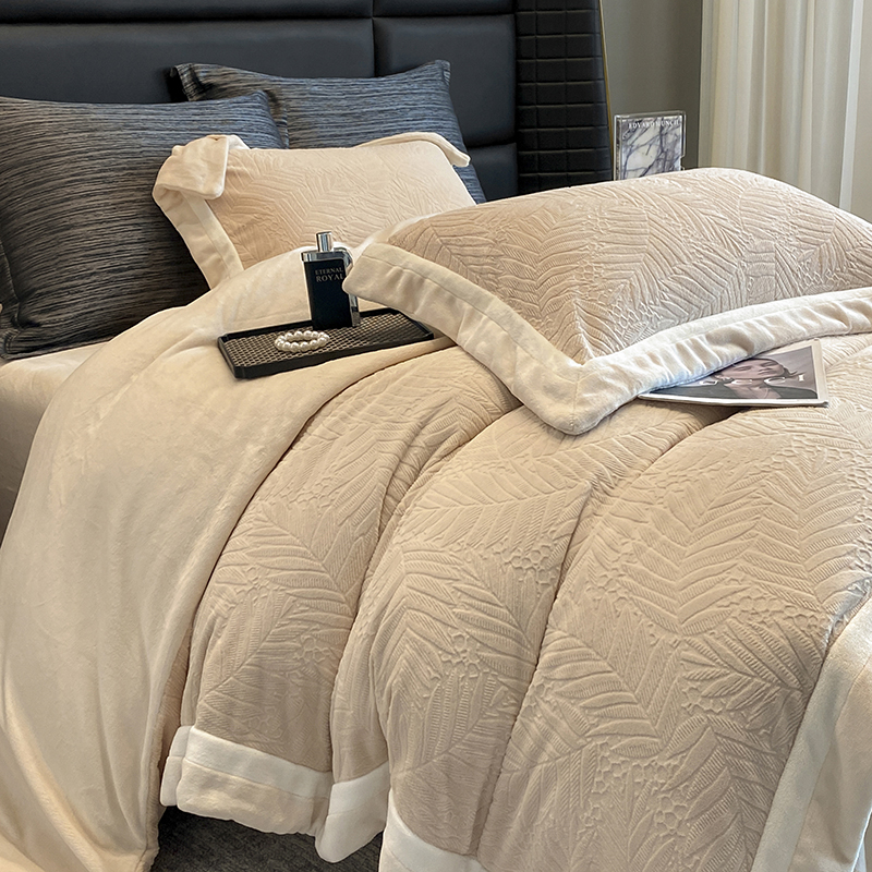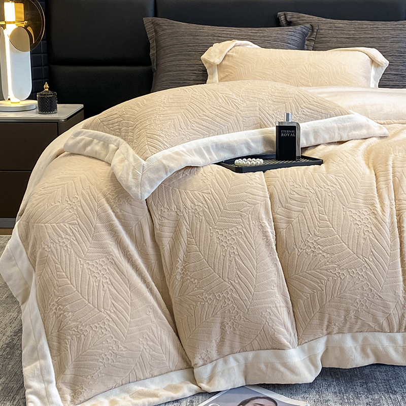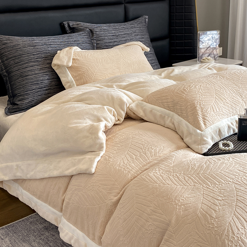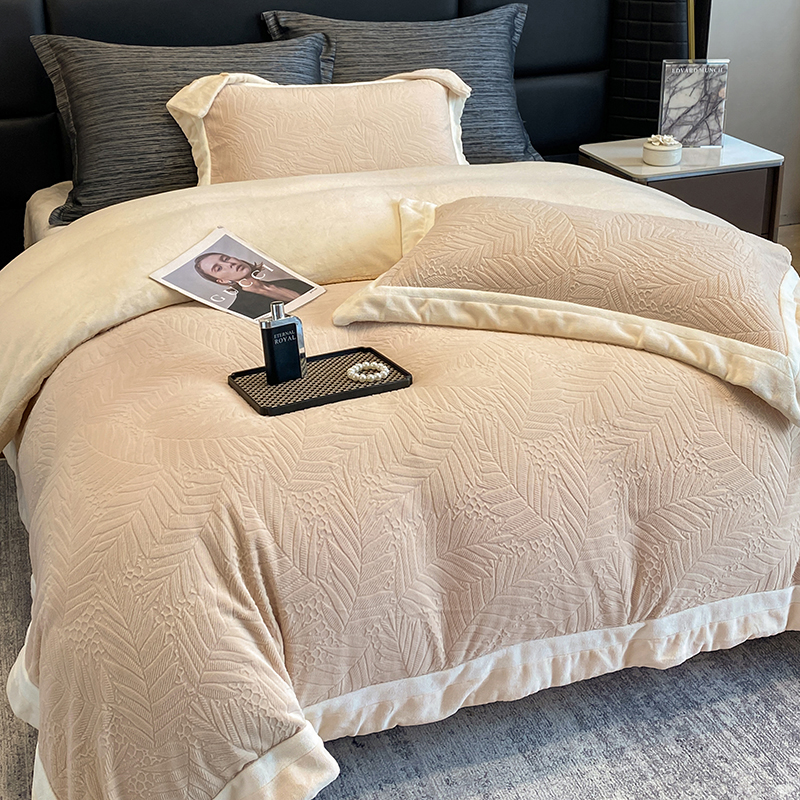 商品名称:2025新款秋冬AB版250克全消光立体雕花烂花牛奶绒双拼角四件套-一叶知秋 一叶知秋-浅驼色