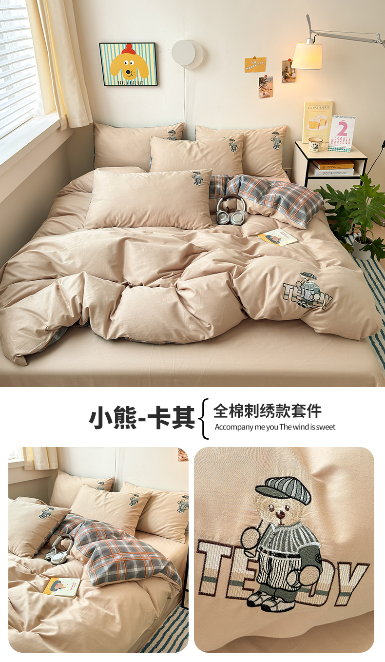 当前位置: 91家纺网 > 商品网购 > 床品套件 > 四件套 > 全棉普通四件套 > 优悦生活馆 2025新款全棉亲肤刺绣成人款四件套-小熊 小熊-卡其
