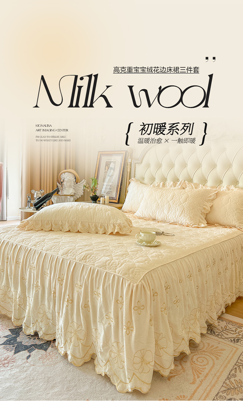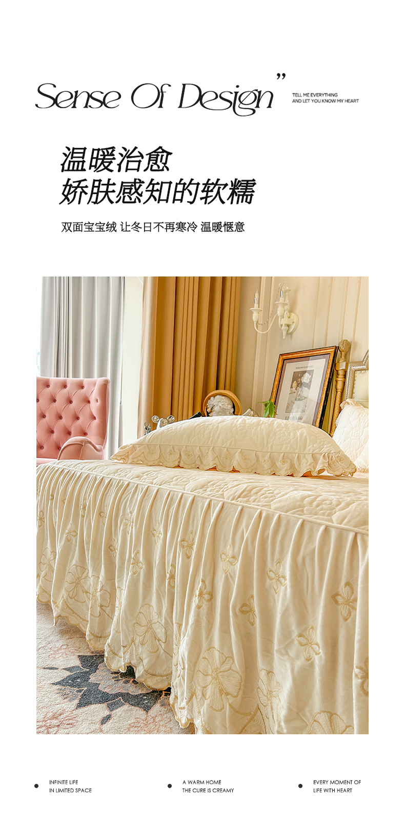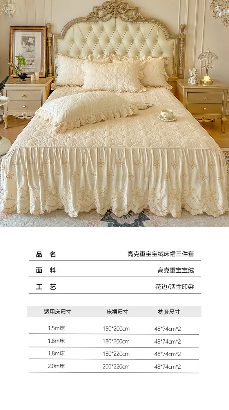 网红馆(ck家纺) 2025新款高克重宝宝绒床裙三件套 奶油黄