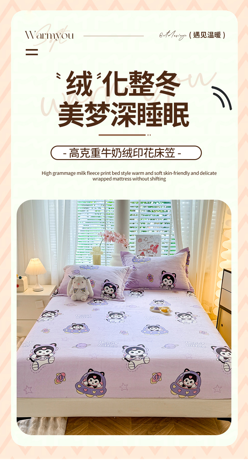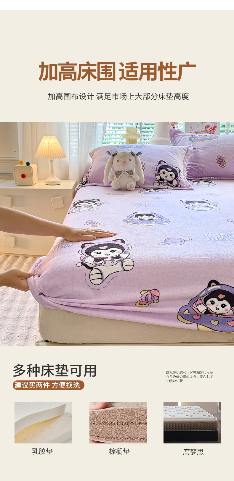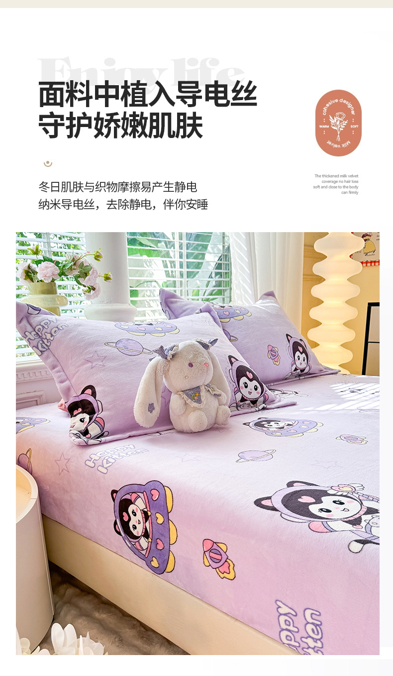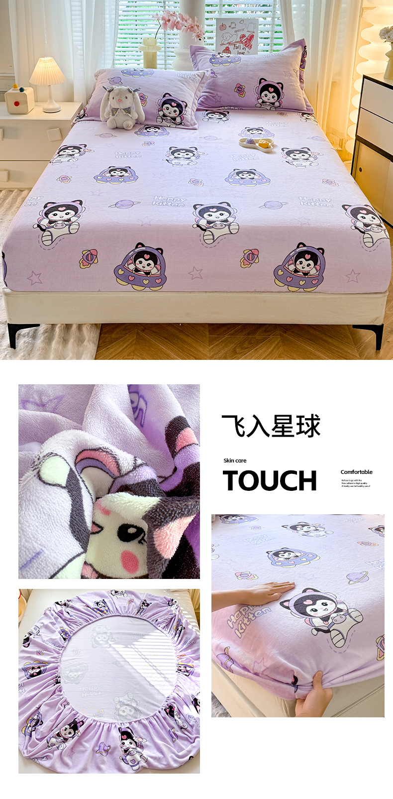 商品名称:妖妖家纺 2024新款200克牛奶绒单床笠 飞入星球