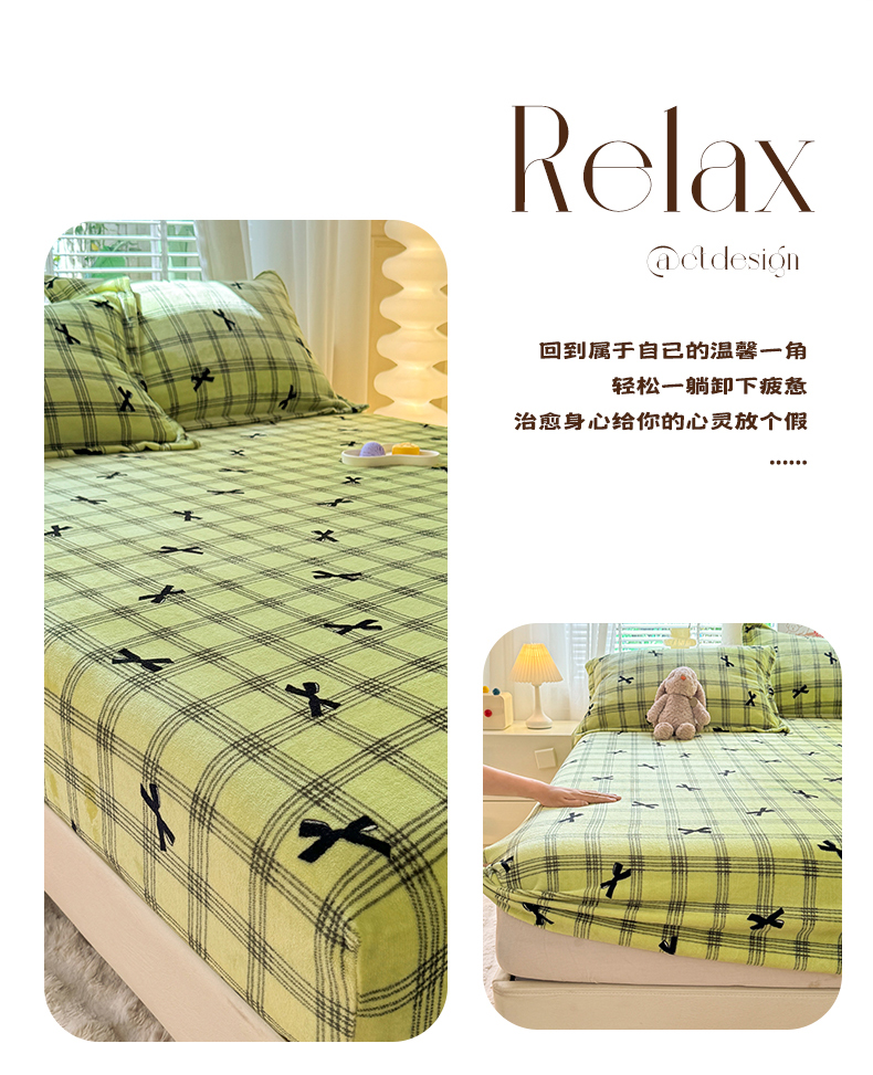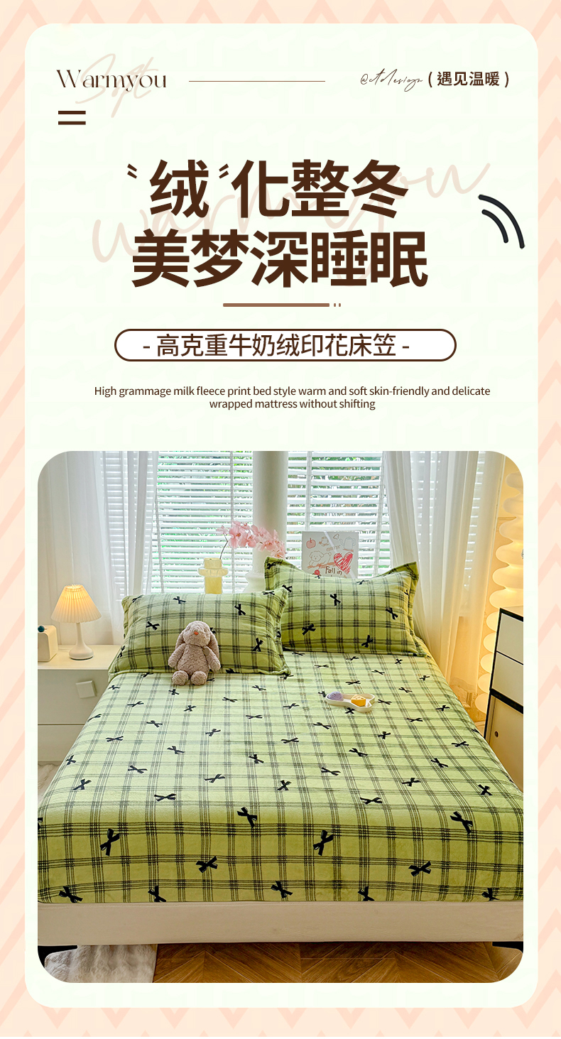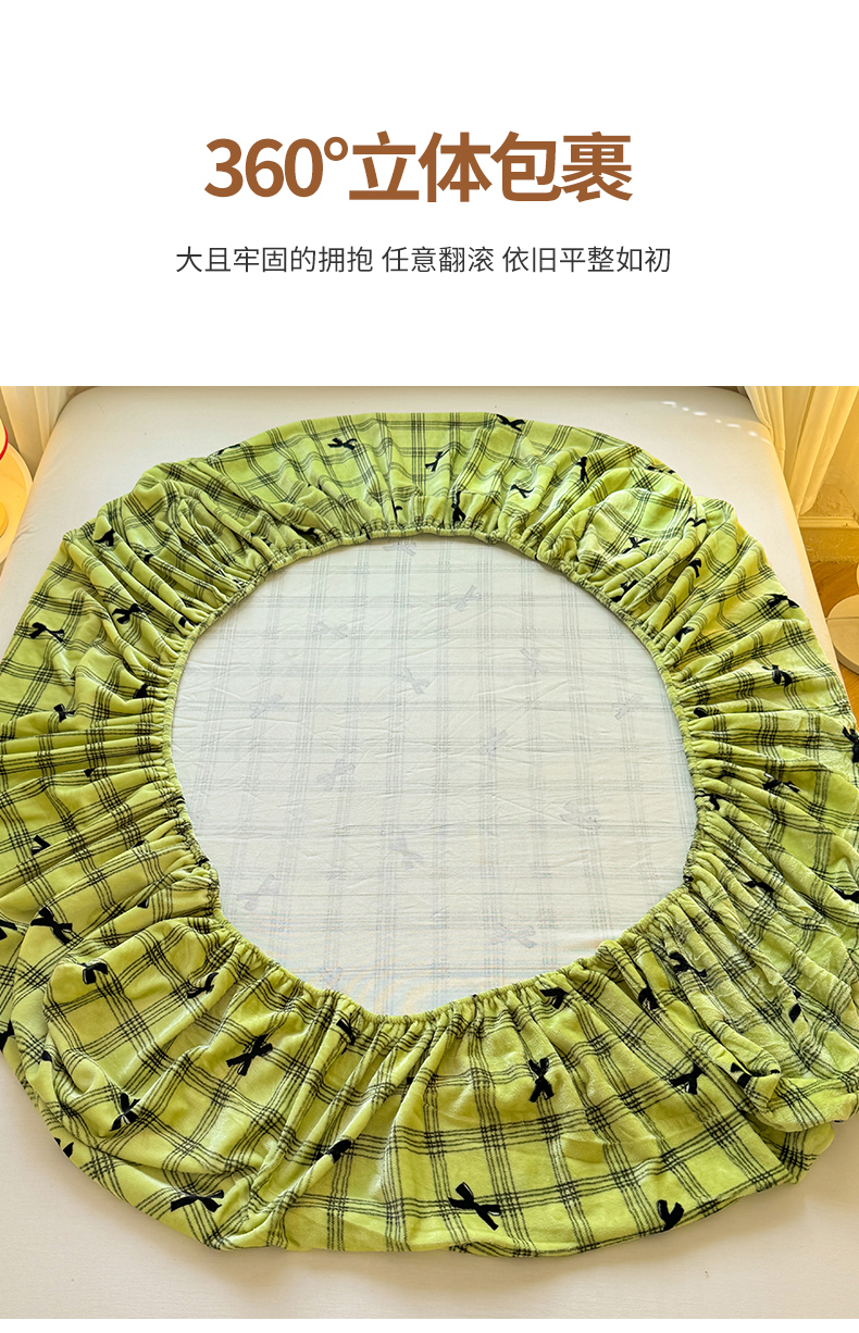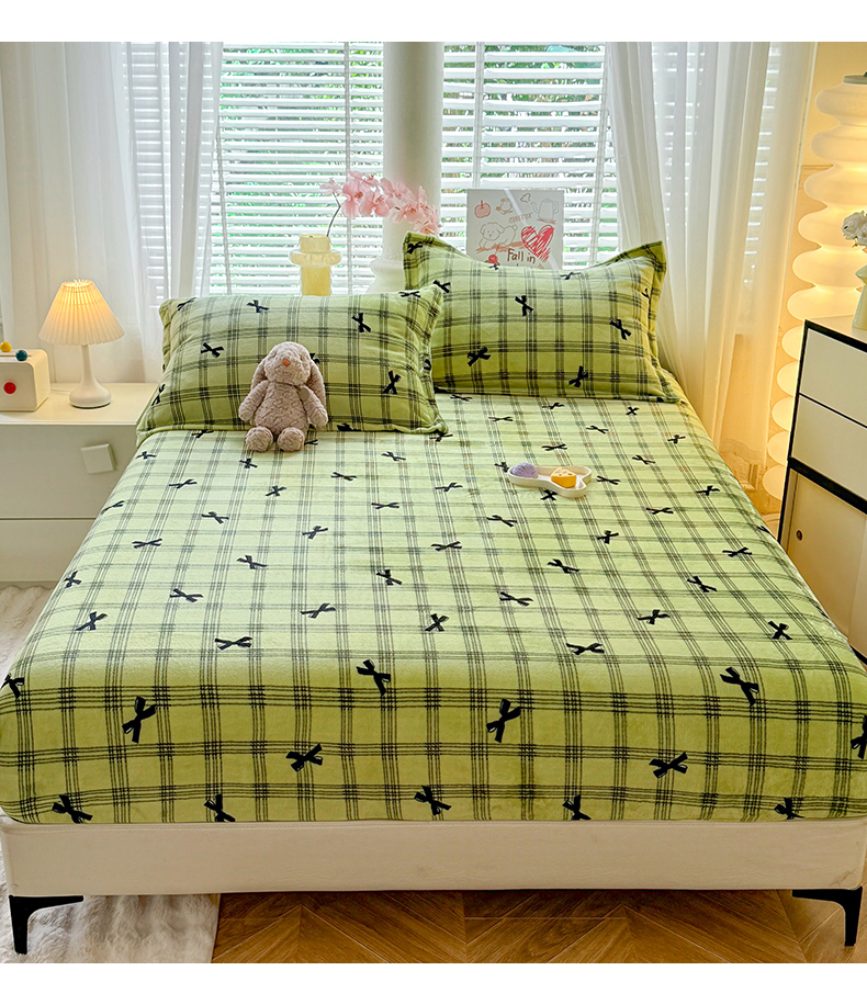 妖妖家纺 2024新款200克牛奶绒单床笠 忆青春-绿