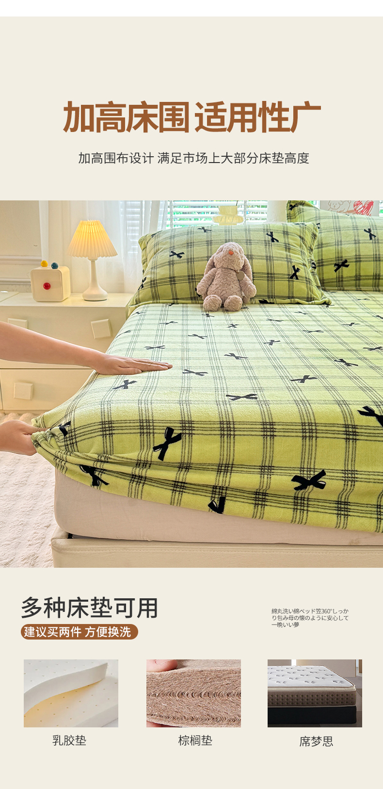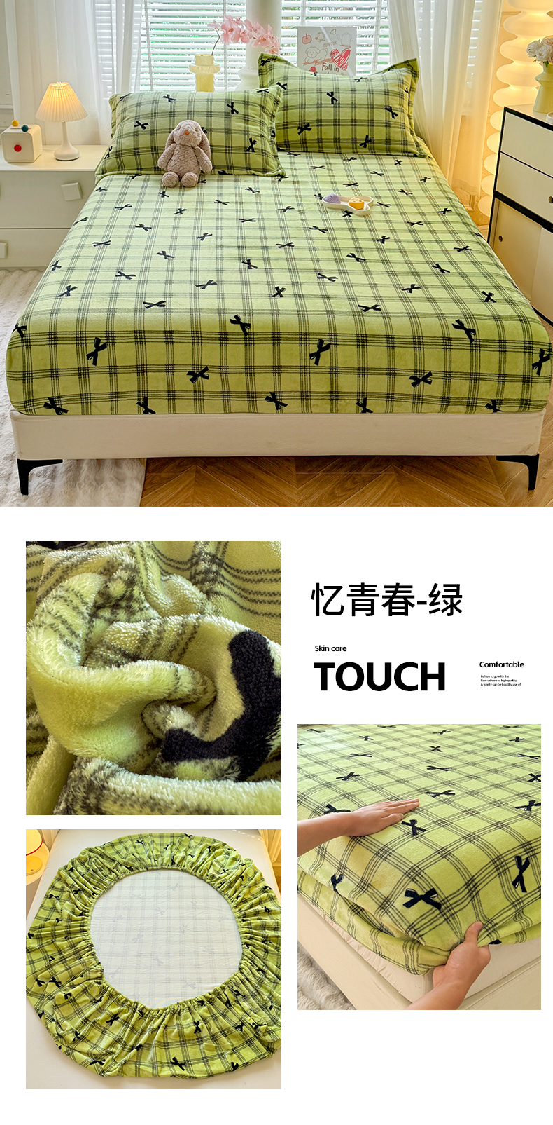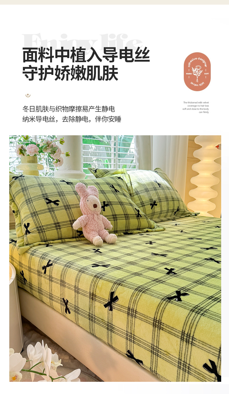 妖妖家纺 2024新款200克牛奶绒单床笠 忆青春-绿