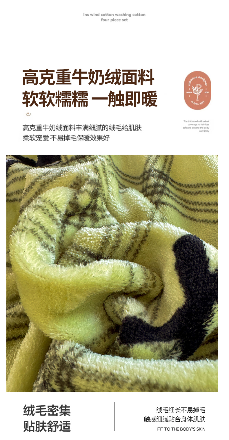 商品名称:妖妖家纺 2024新款200克牛奶绒单床笠 忆青春-绿