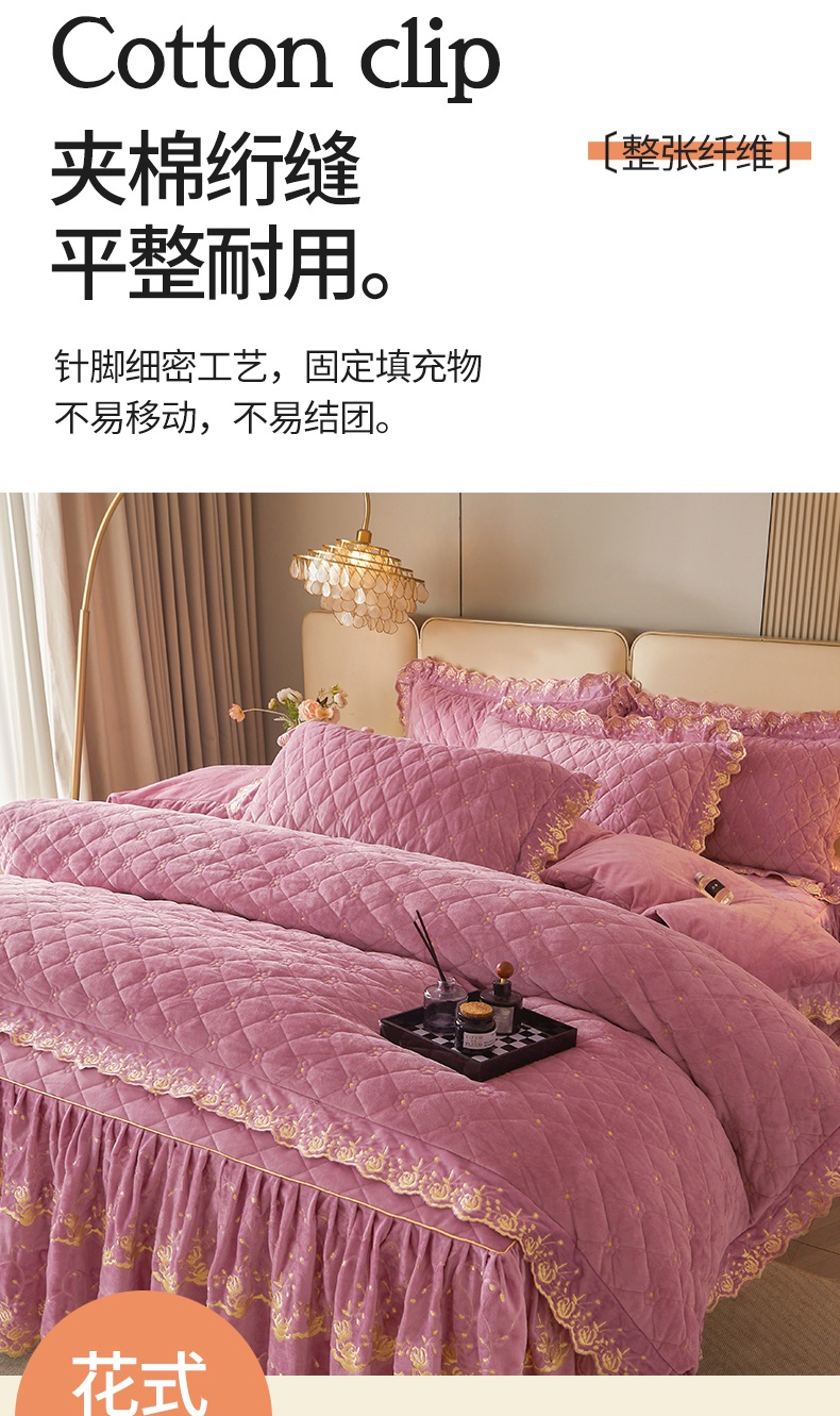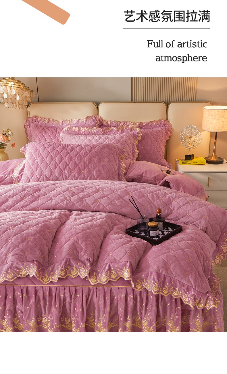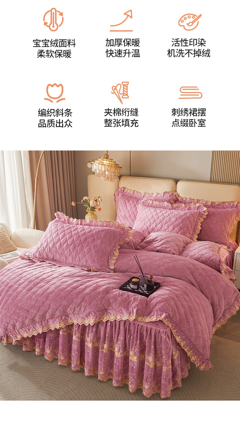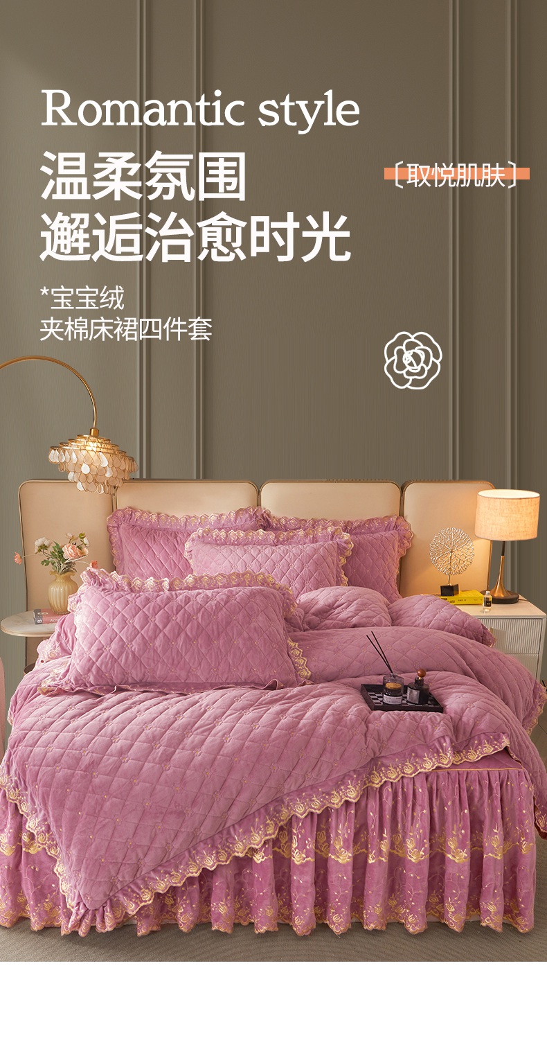 当前位置: 91家纺网 > 商品网购 > 床品套件 > 四件套 > 其它四件套 > 罗艺轩 2024新款加厚宝宝绒夹棉床裙四件套-梦幻星辰 丁香紫