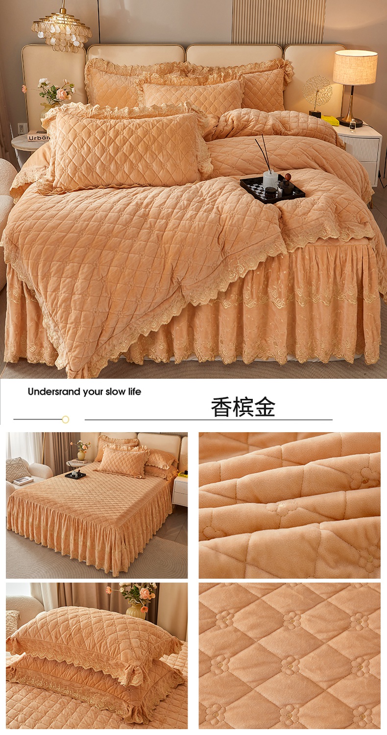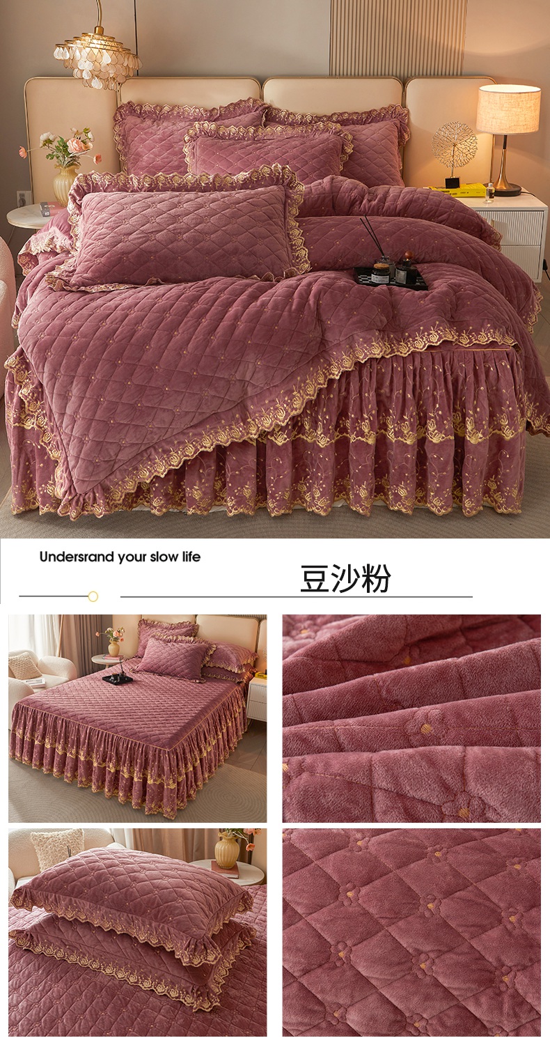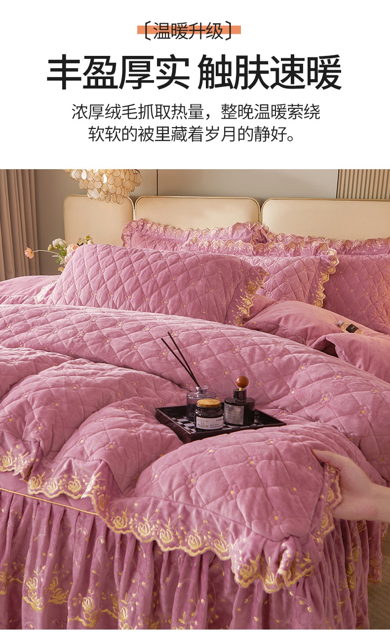 当前位置: 91家纺网 > 商品网购 > 床品套件 > 四件套 > 其它四件套 > 罗艺轩 2024新款加厚宝宝绒夹棉床裙四件套-梦幻星辰 丁香紫