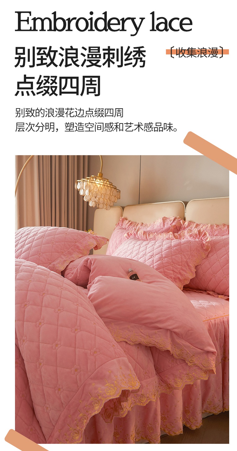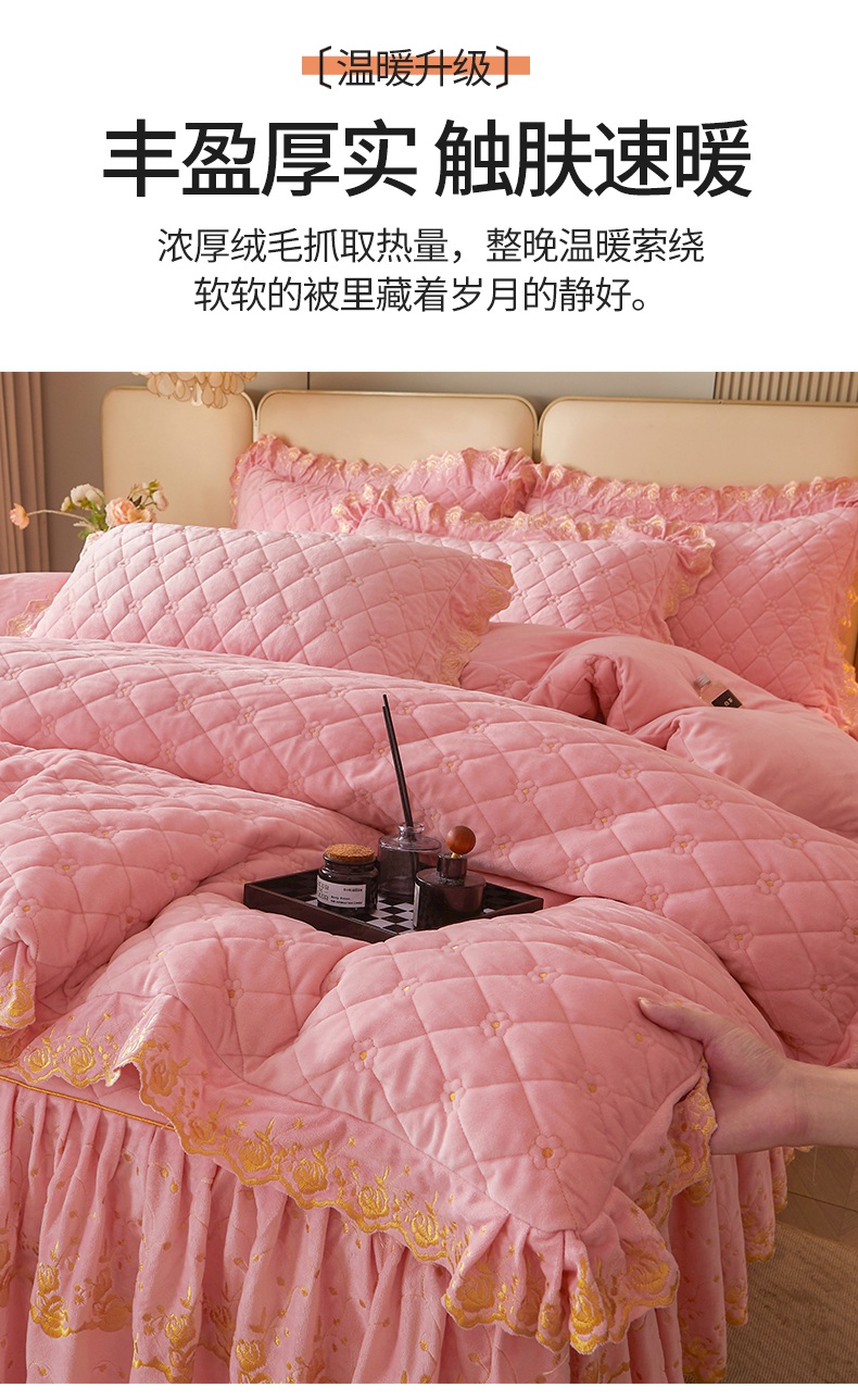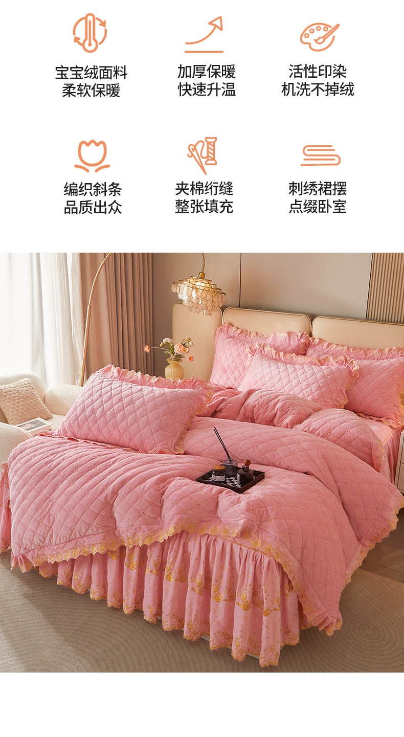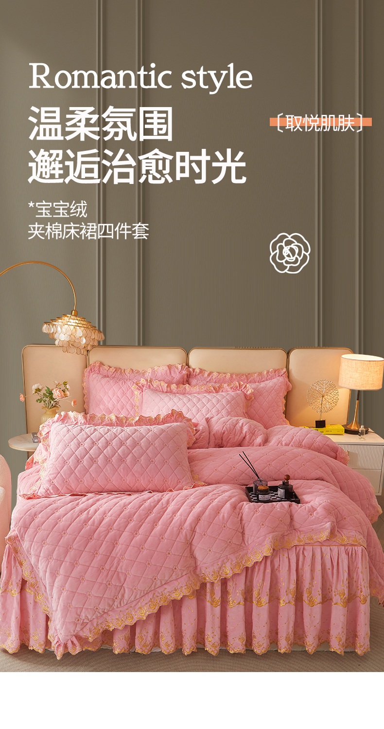 当前位置: 91家纺网 > 商品网购 > 床品套件 > 四件套 > 其它四件套 > 罗艺轩 2024新款加厚宝宝绒夹棉床裙四件套-梦幻星辰 樱花粉