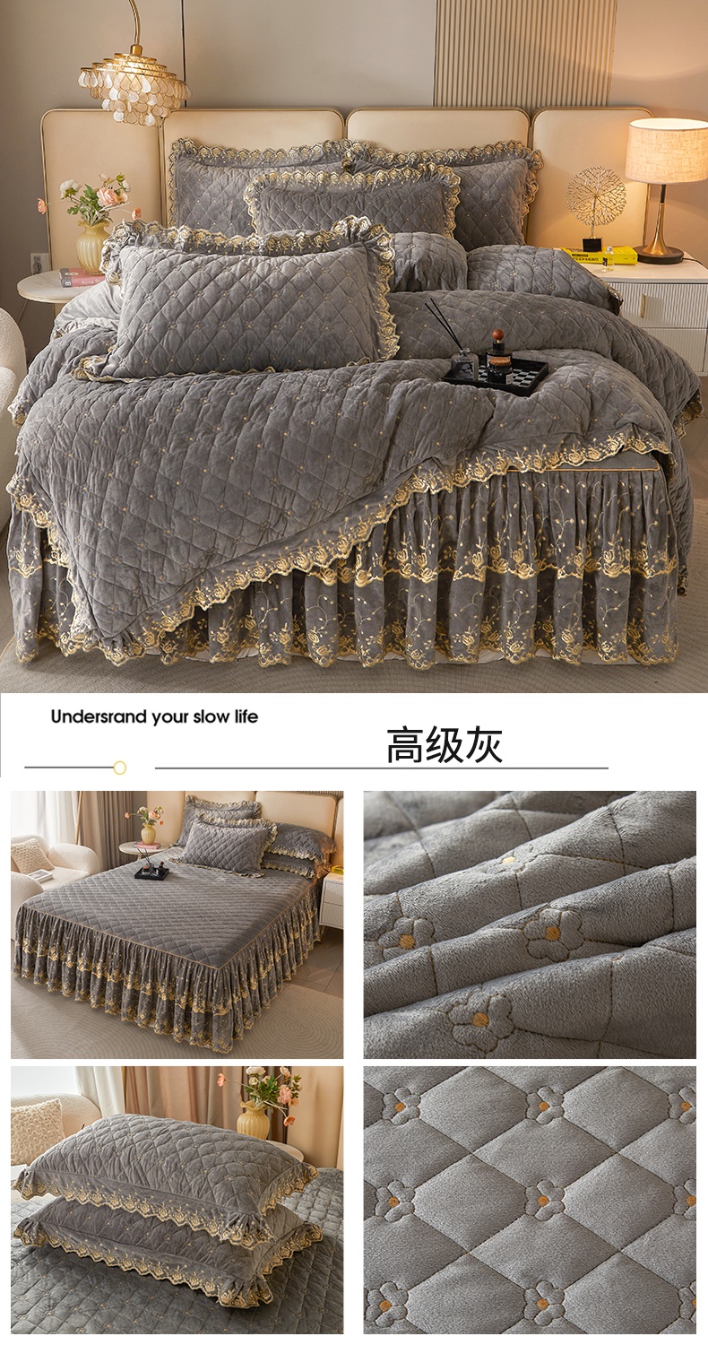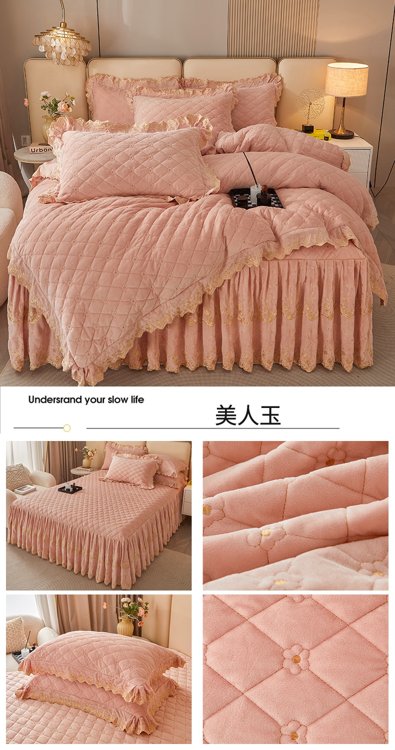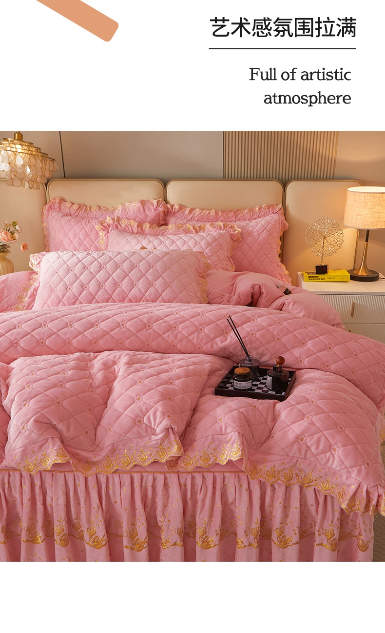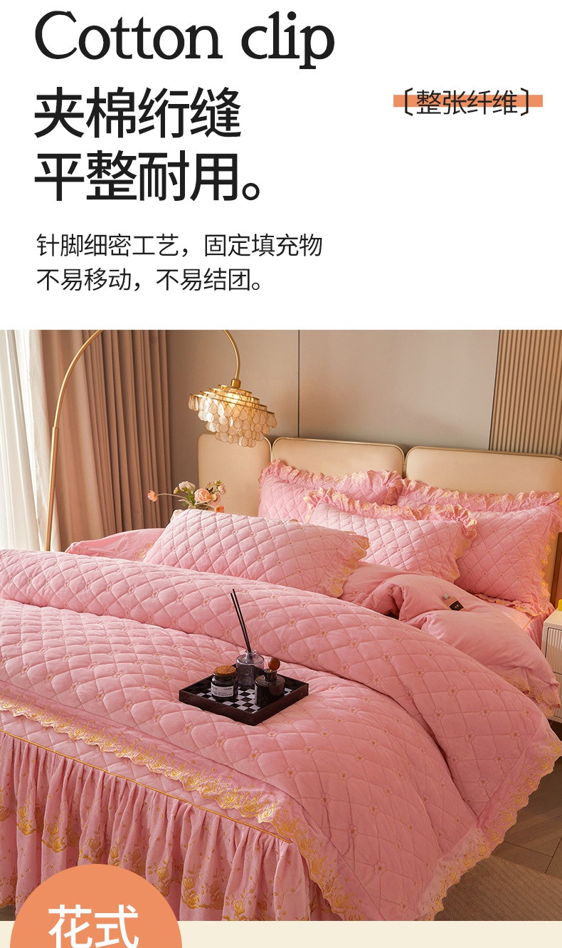 当前位置: 91家纺网 > 商品网购 > 床品套件 > 四件套 > 其它四件套 > 罗艺轩 2024新款加厚宝宝绒夹棉床裙四件套-梦幻星辰 樱花粉