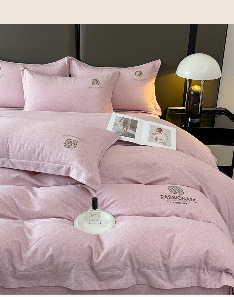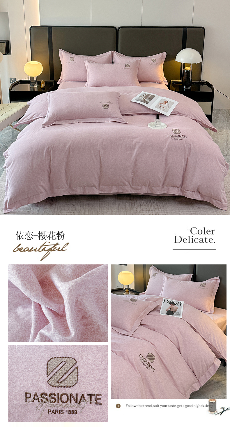 (总)铭浩家纺 2025新款100 %全棉磨毛剌绣宽边四件套-依恋,依恋- 米驼,依恋- 樱花粉,依恋- 紫灰,依恋-轻紫,依恋-雾霾灰