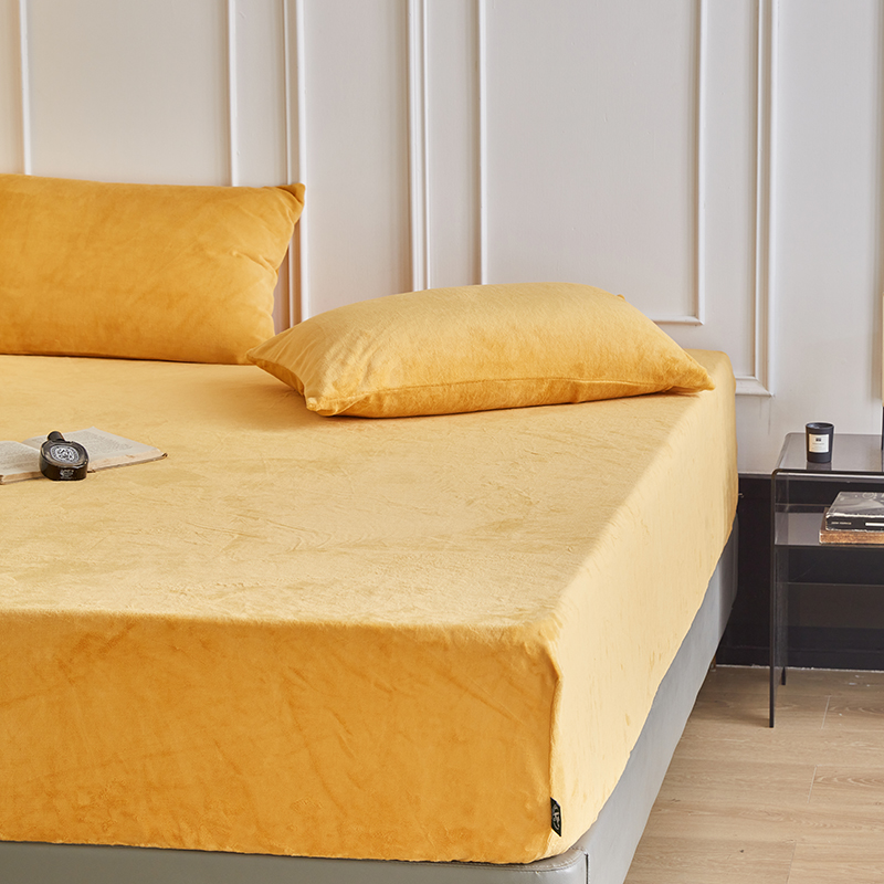 千朵森 2024新款A类纯色牛奶绒单床笠-芙妮系列-风格二 芙妮-奶芋黄