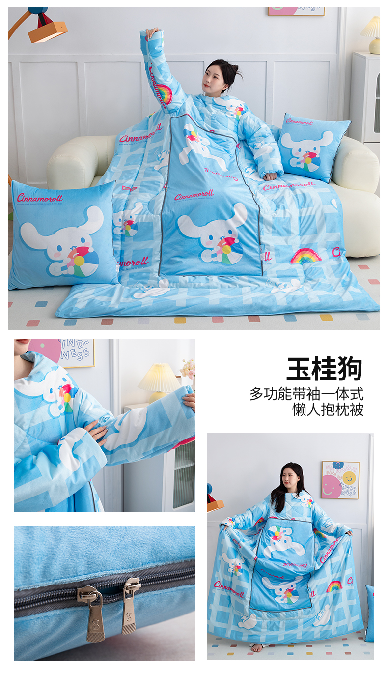 商品名称:照世家纺 2024新款卡通三丽鸥水晶绒多功能带袖一体式抱枕被 玉桂狗