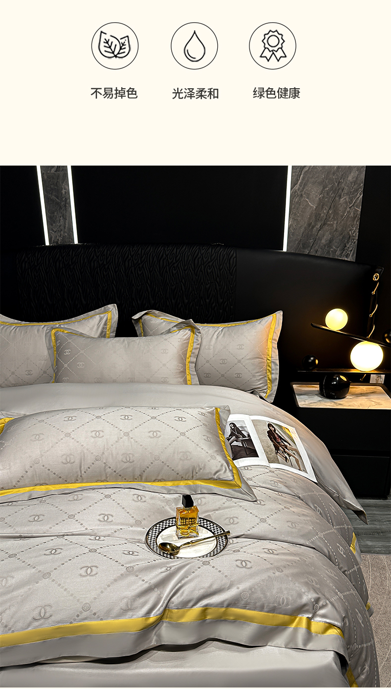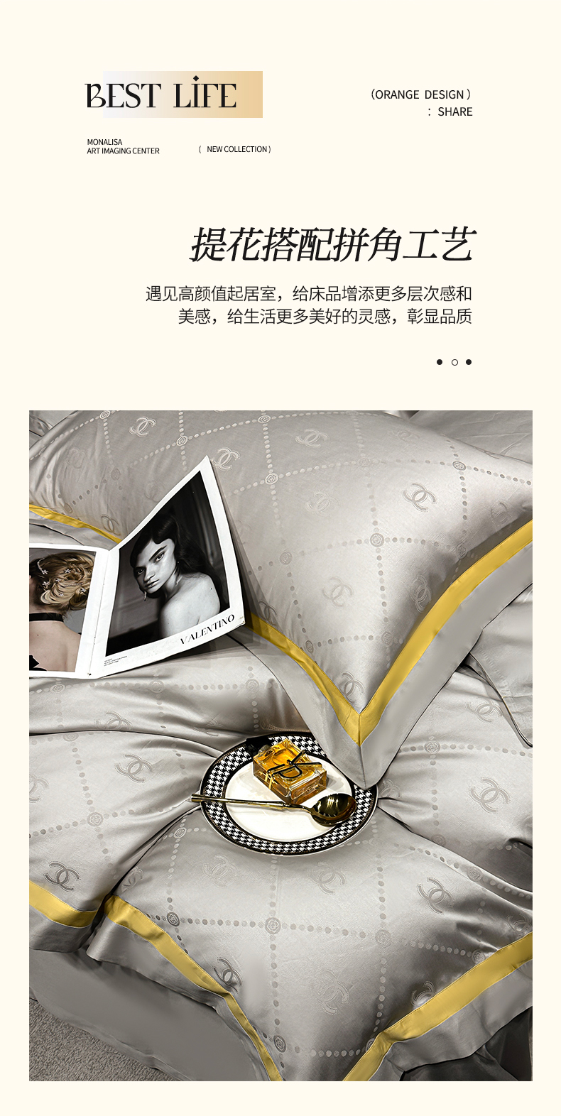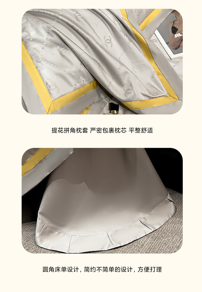 商品名称:雲归梦 2024新款轻奢双拼角全棉提花四件套 大牌恋曲-高级灰
