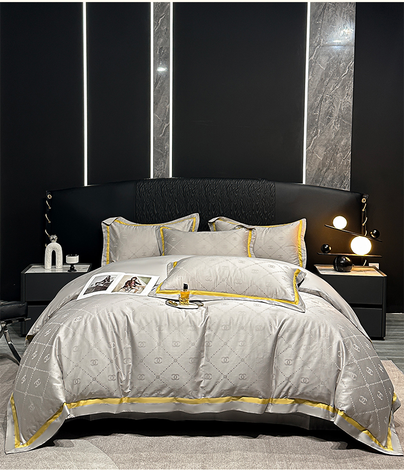 雲归梦 2024新款轻奢双拼角全棉提花四件套 大牌恋曲-高级灰