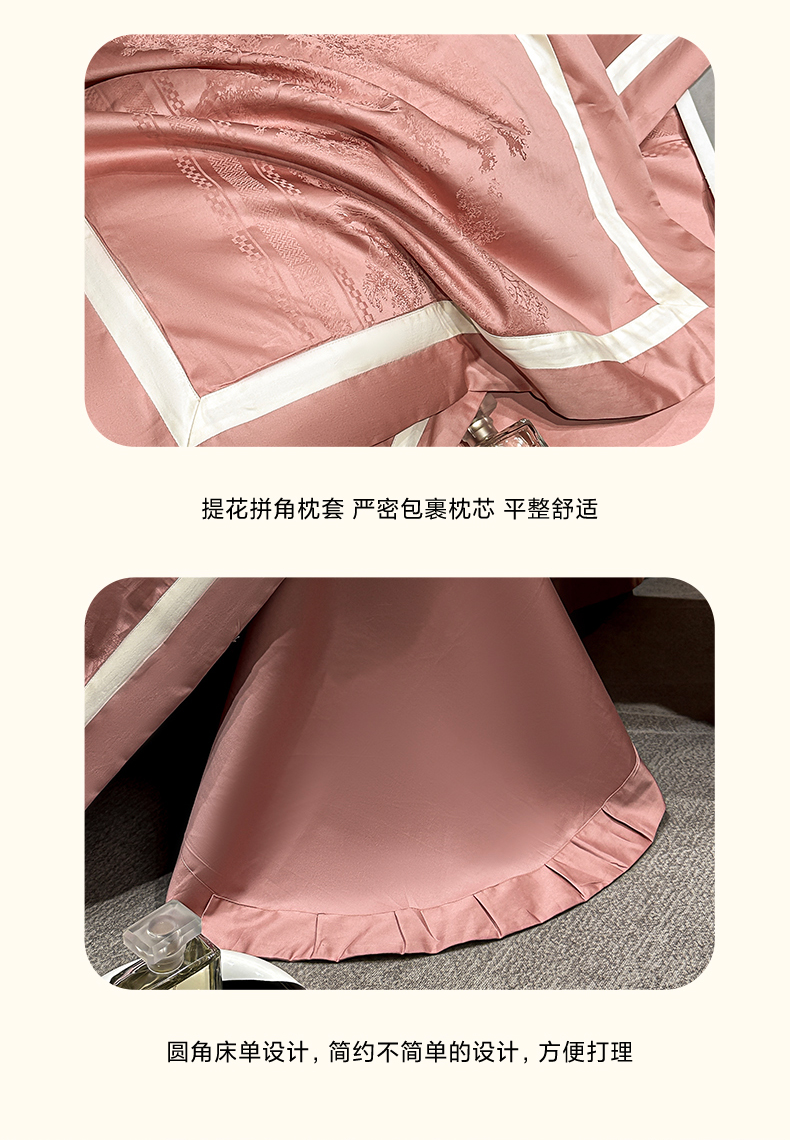 商品名称:雲归梦 2024新款轻奢双拼角全棉提花四件套 卡格洛-皮粉