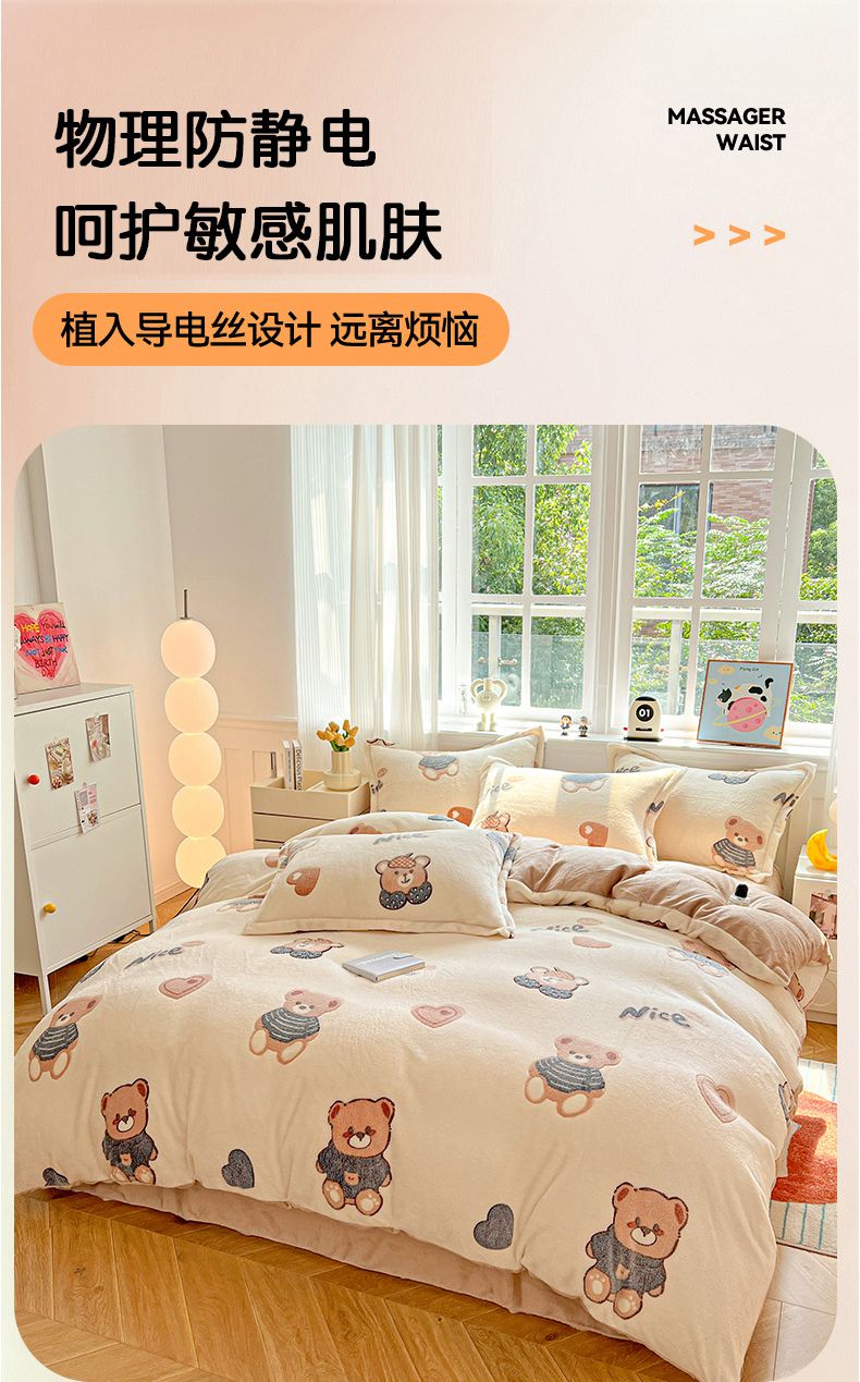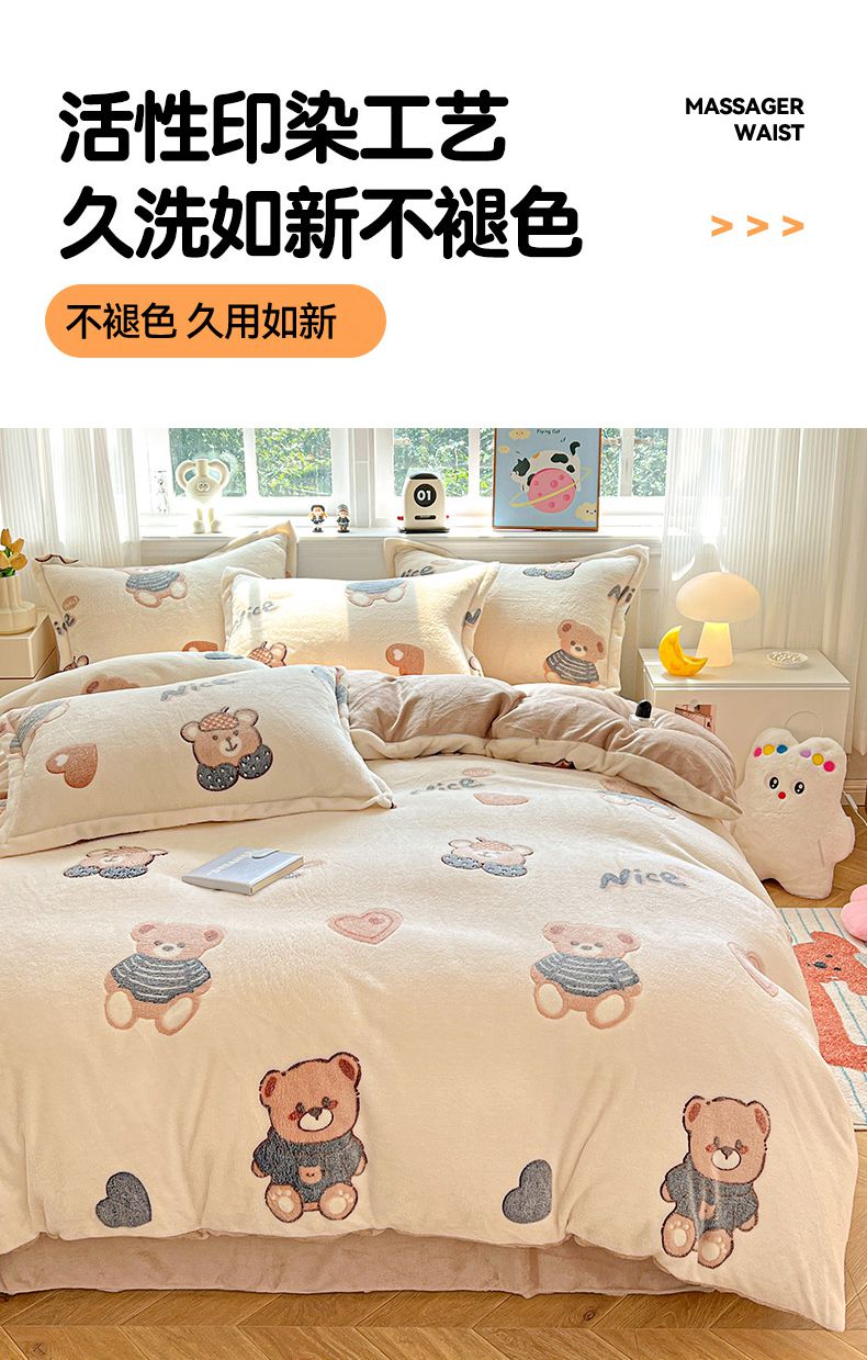 当前位置: 91家纺网 > 商品网购 > 床品套件 > 四件套 > 牛奶绒四件套 > 韩巢家纺 2024新款加厚雪花绒牛奶绒珊瑚绒四件套-新品(提供卖家秀) 英伦熊