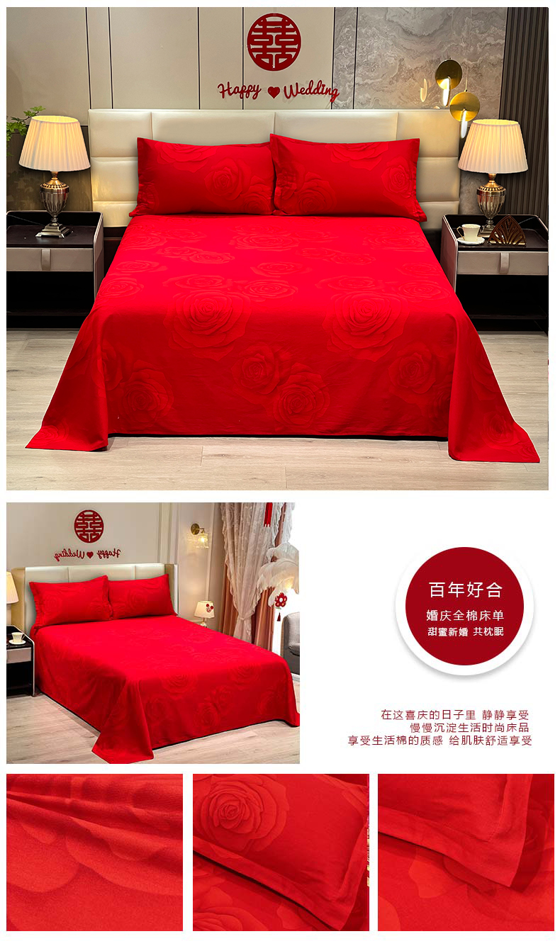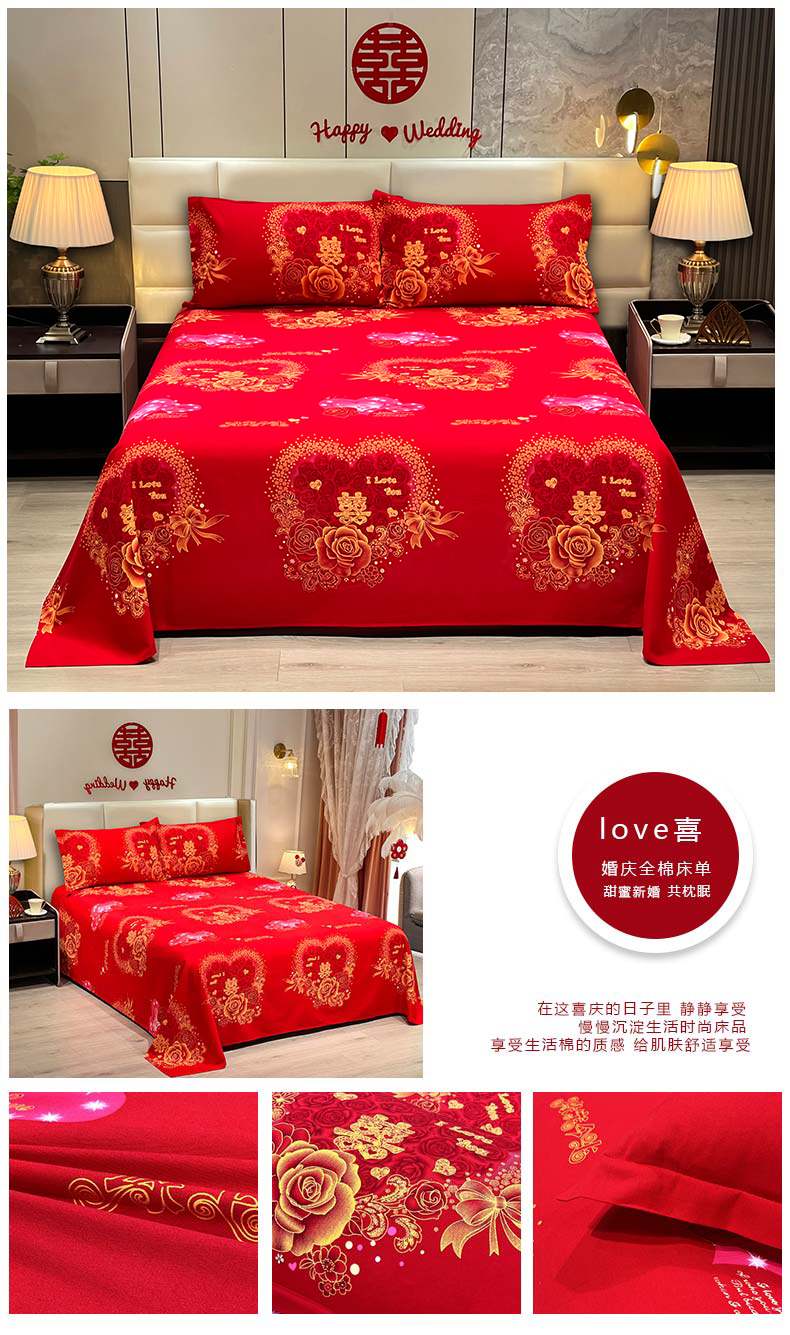 (总)居美良品 2025新款大红色床单全棉磨毛床单结婚婚庆纯棉床单,花好月圆,花开富贵,浪漫情缘,龙凤呈祥,相亲相爱,幸福时刻,永结同心,中国结