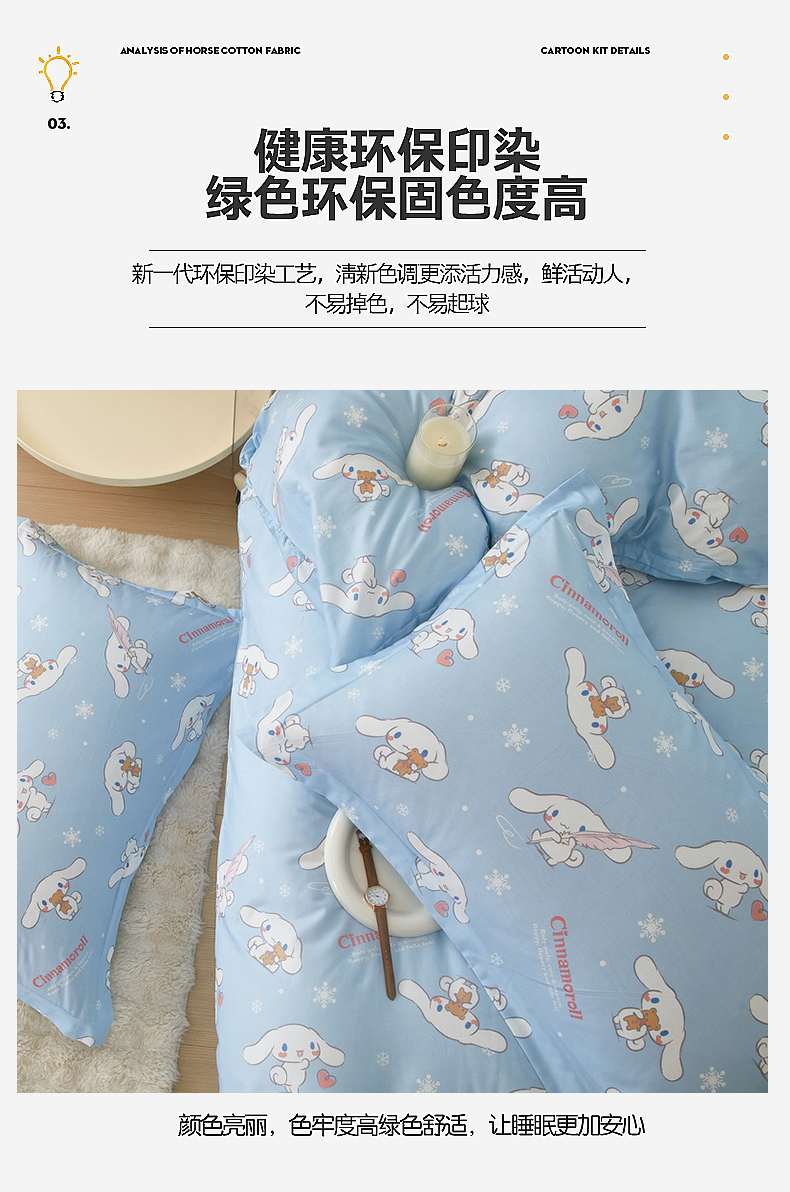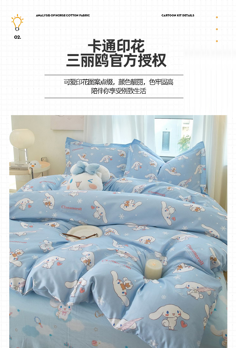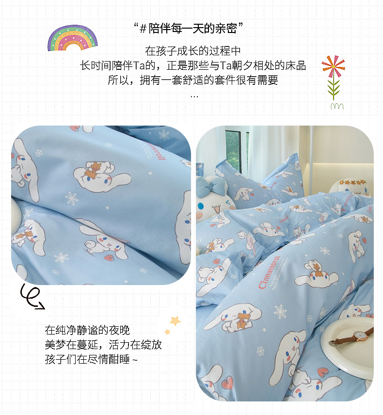 当前位置: 91家纺网 > 商品网购 > 床品套件 > 四件套 > 全棉普通四件套 > 蘭菲家纺 2024新款全棉小版卡通三丽鸥四件套 小雪儿