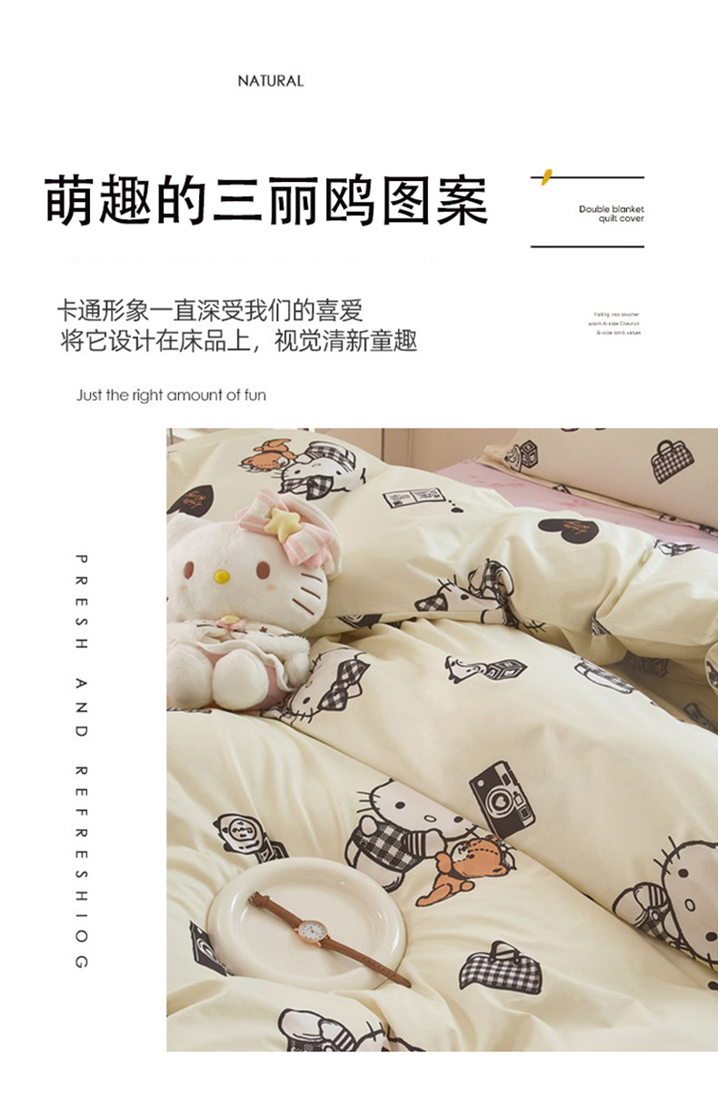 (总)蘭菲家纺 2026新款全棉三丽欧印花卡通四件套,必爱乐奶茶,波点KT,车站KT,大杯奶茶KT,逛街狗,精致狗狗,可爱KT灰,快乐小库,快乐休假,露营快乐,美乐必爱,轻松美乐蒂,涂鸦KT,夏日快乐,小库儿,小库故事