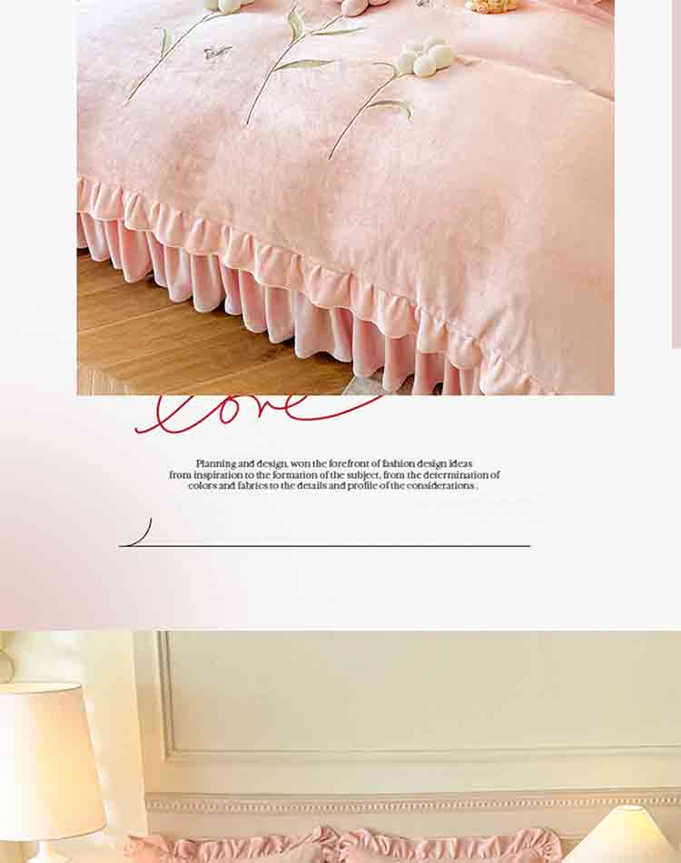 (总)漫布云 2025新款230g高克重韩版立体盘花牛奶蚕丝绒绣花四件套床裙款被套-洛丽塔系列,洛丽塔-嫩黄 ,洛丽塔-香芋紫 , 洛丽塔-珍珠粉,洛丽塔-婴儿蓝