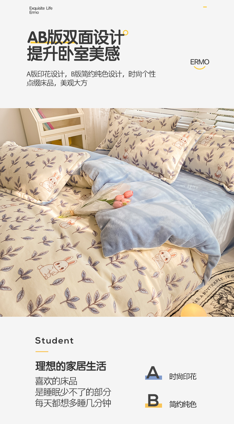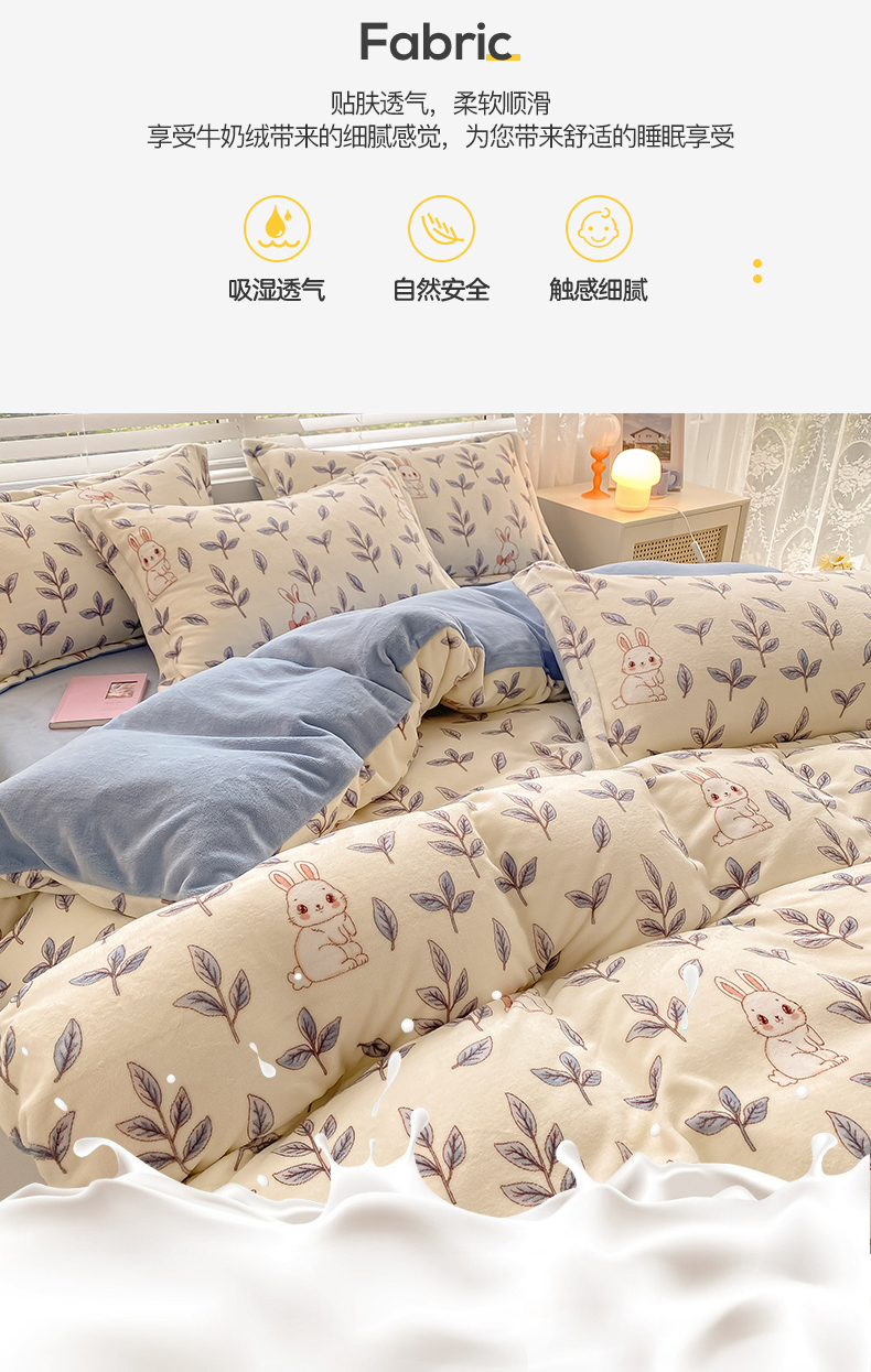 商品名称:瑞莱 2024新款印花牛奶绒四件套-2023年热款系列 绒芳草集