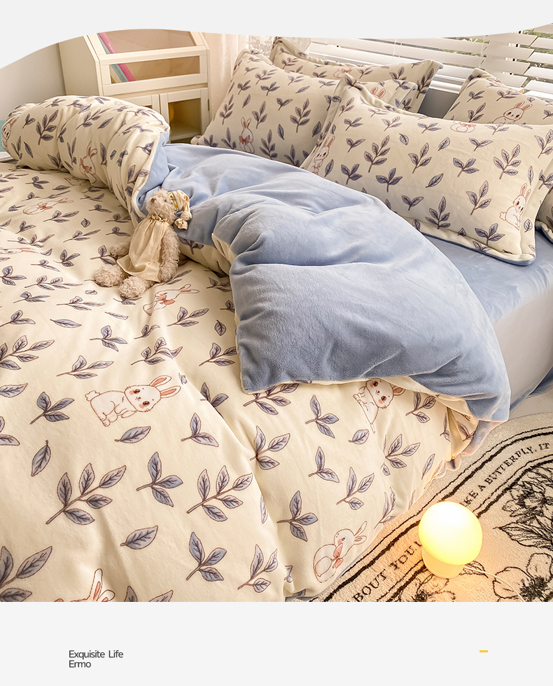 瑞莱 2024新款印花牛奶绒四件套-2023年热款系列 绒芳草集
