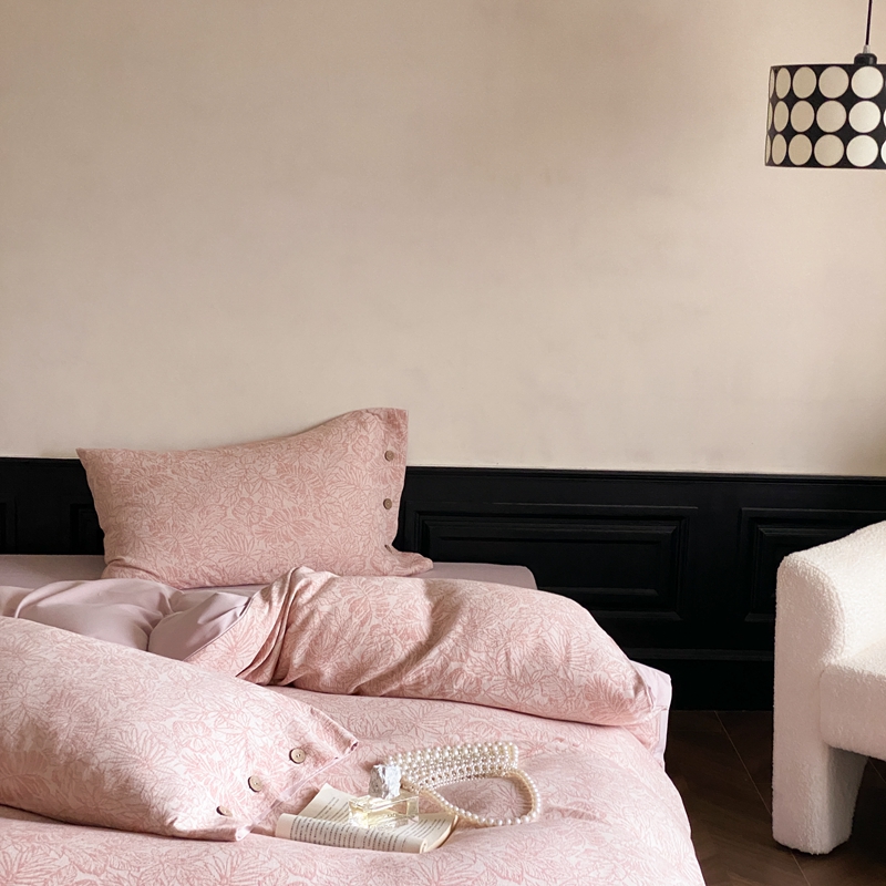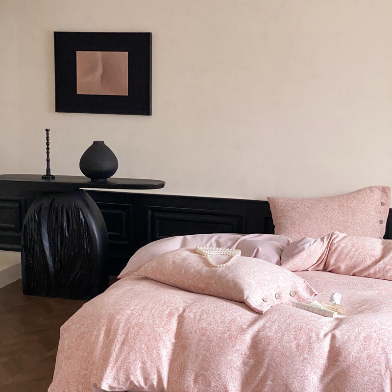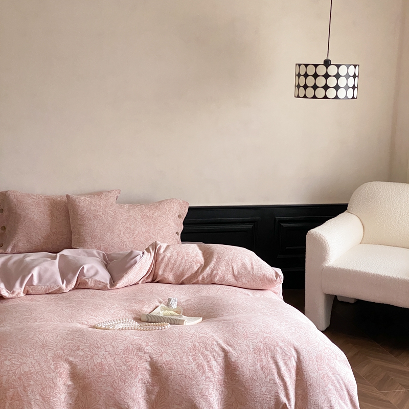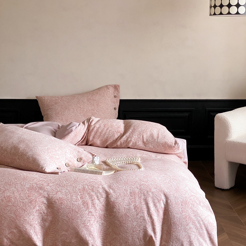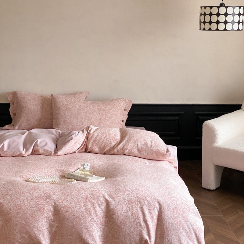 商品名称:旷野 2024新款全棉色织大提花磨毛四件套 晚枫林-粉