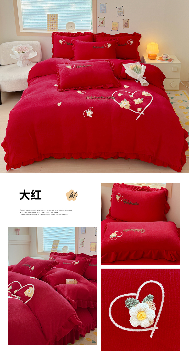 金米诺 2024新款牛奶绒毛巾绣四件套 大红