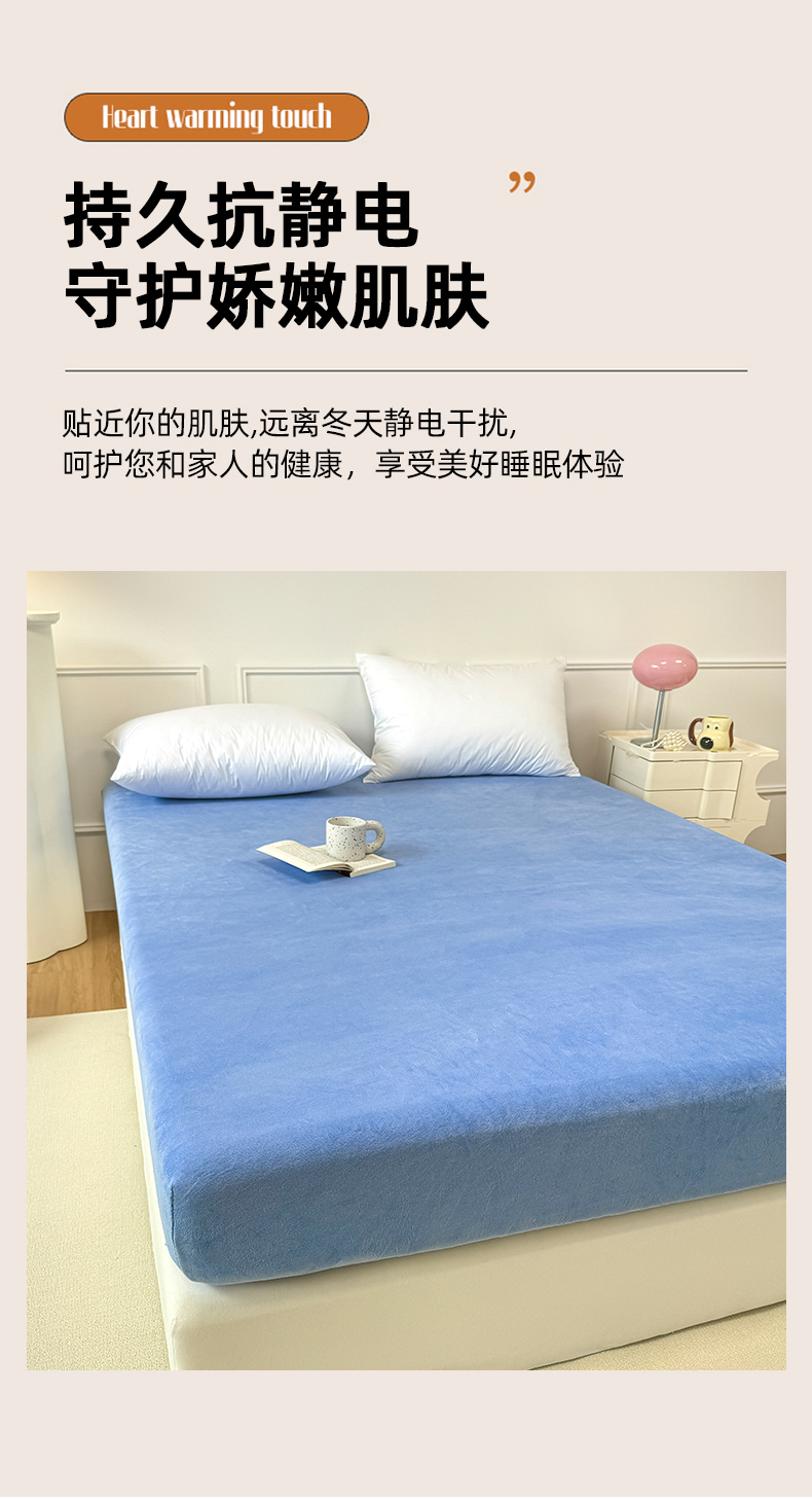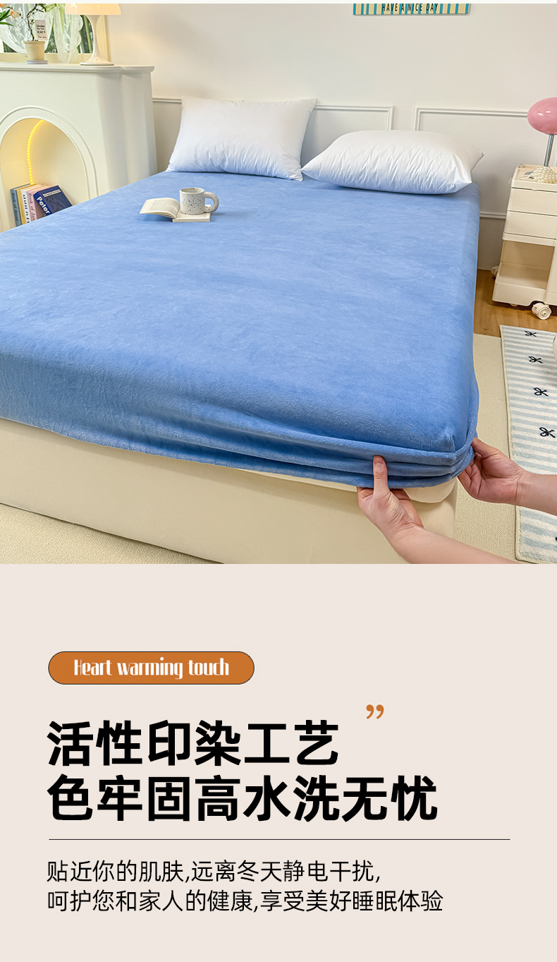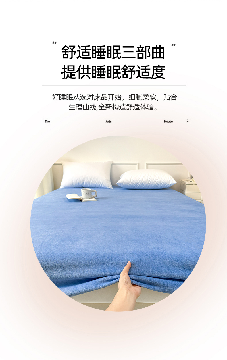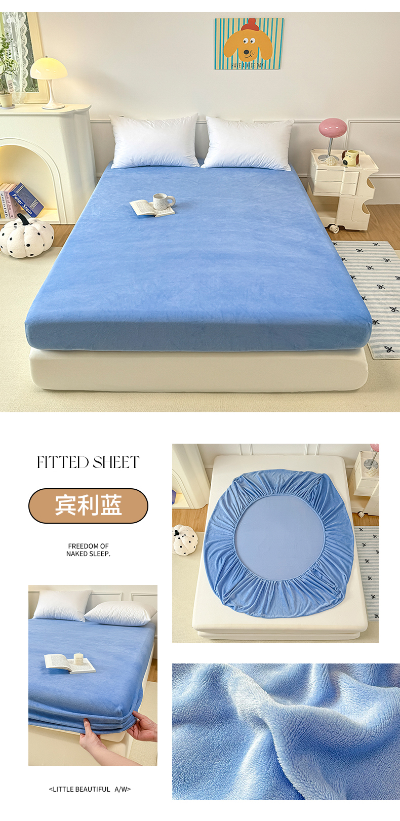 商品名称:觅妮家纺 2025新款全消光200g保暖牛奶绒纯色简约款床笠 宾利蓝