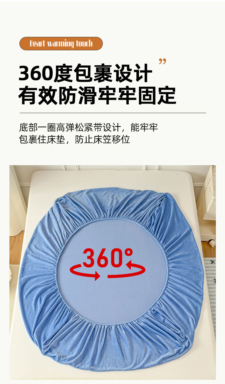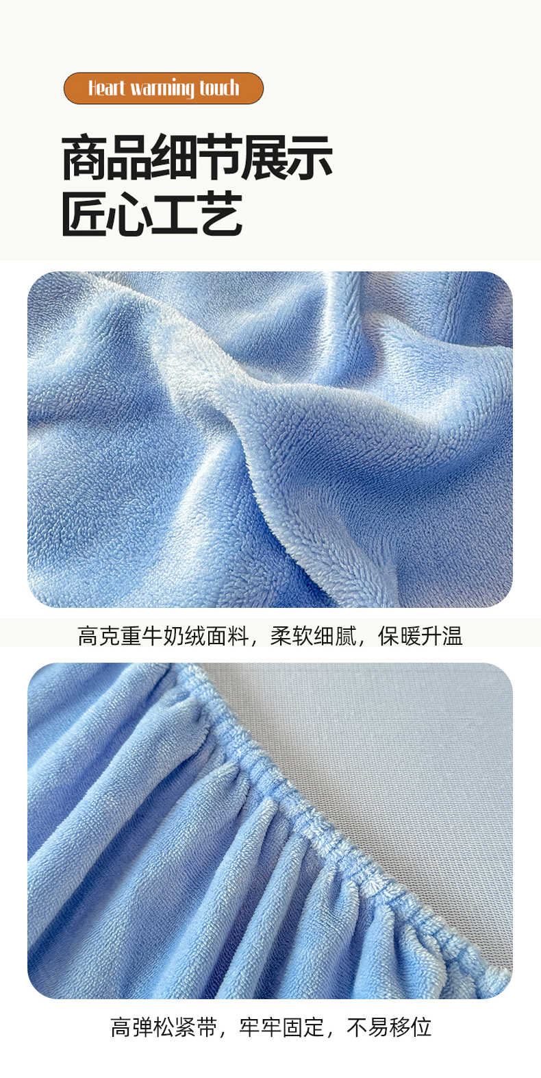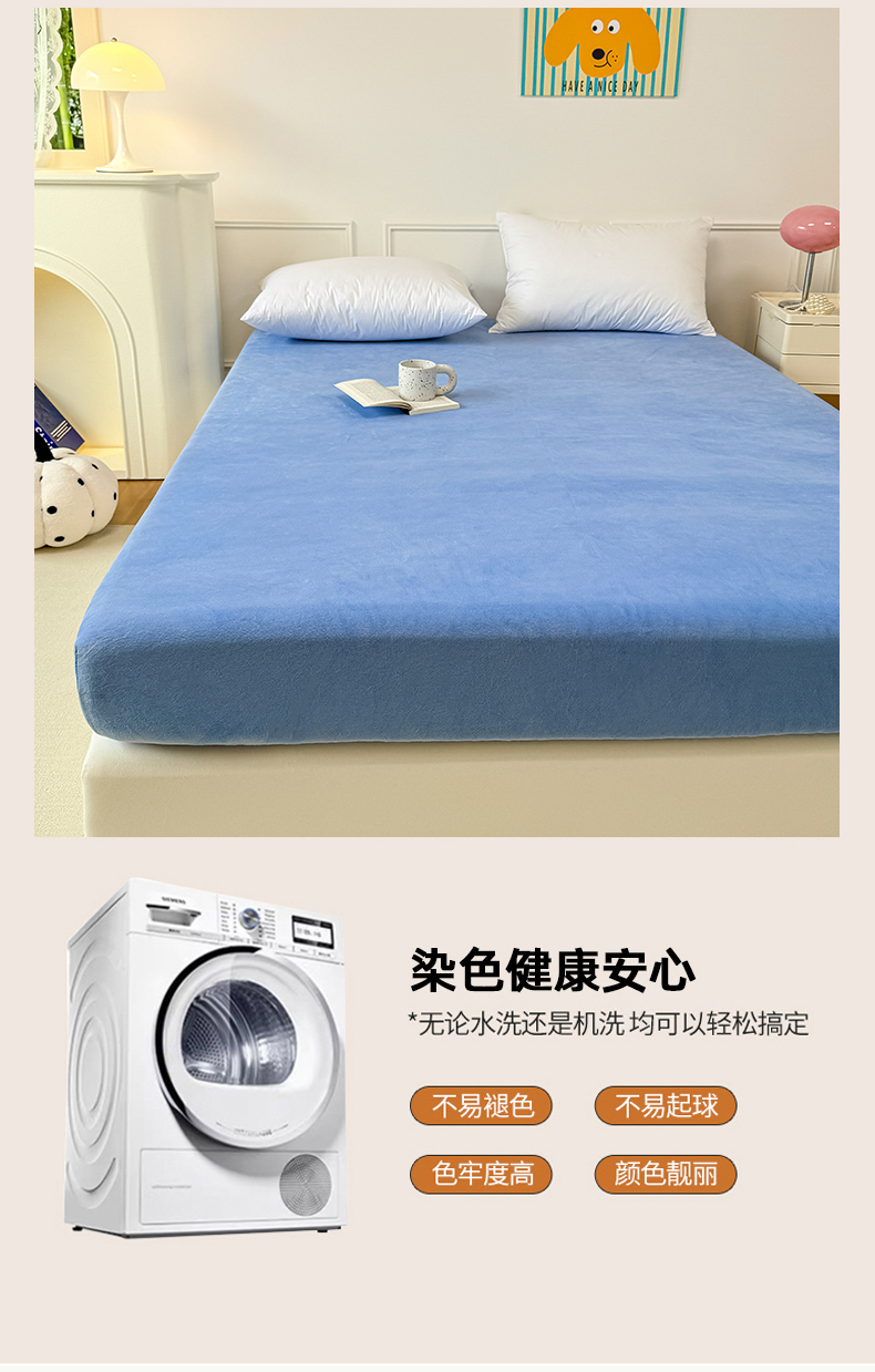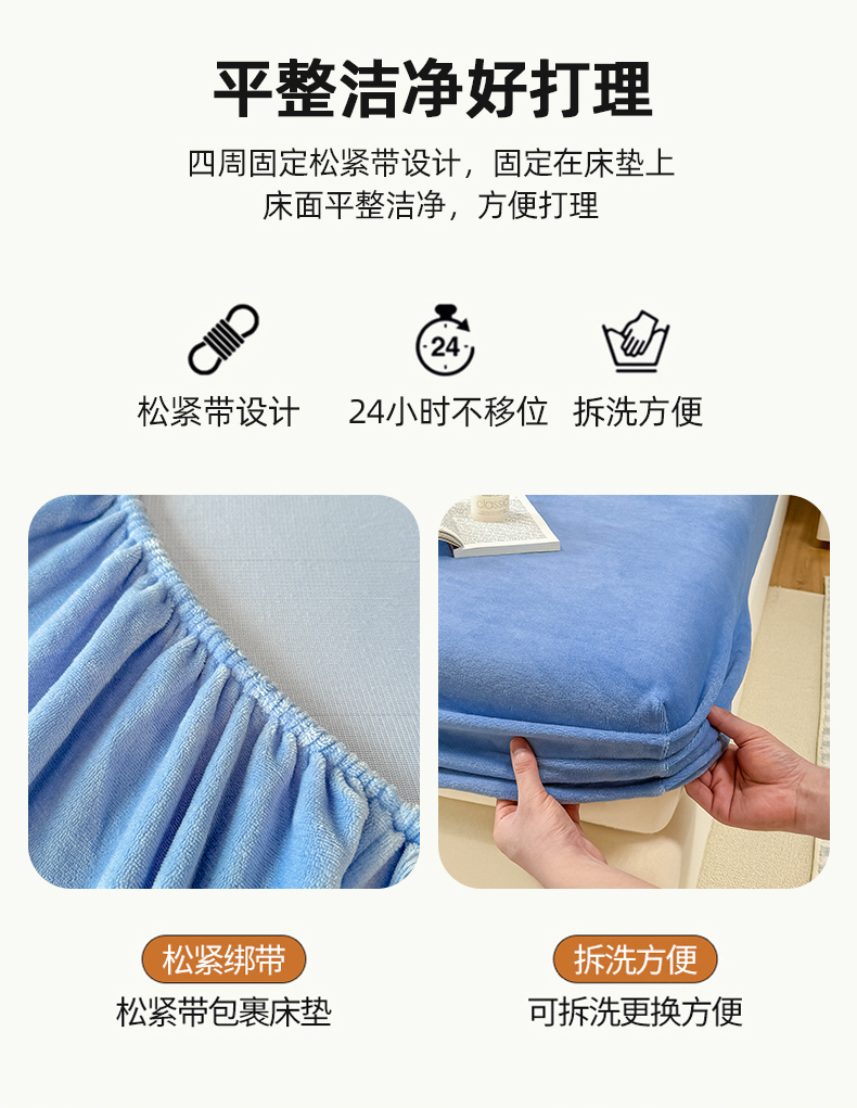 商品名称:觅妮家纺 2025新款全消光200g保暖牛奶绒纯色简约款床笠 宾利蓝