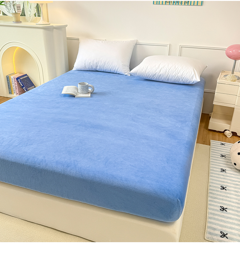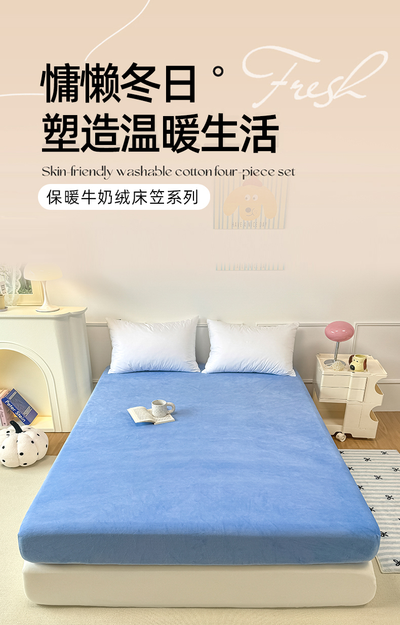 觅妮家纺 2025新款全消光200g保暖牛奶绒纯色简约款床笠 宾利蓝