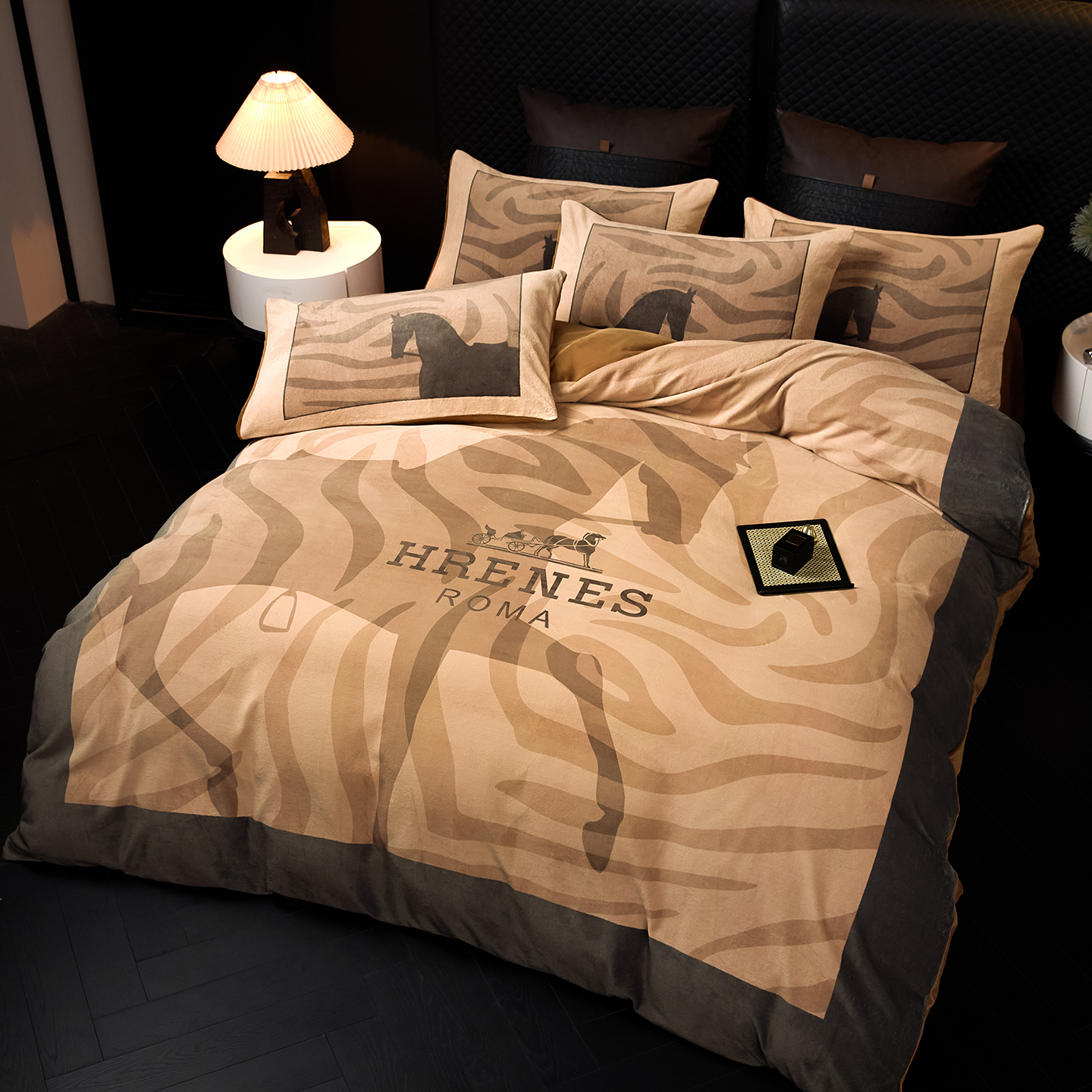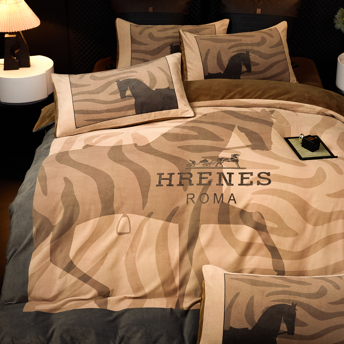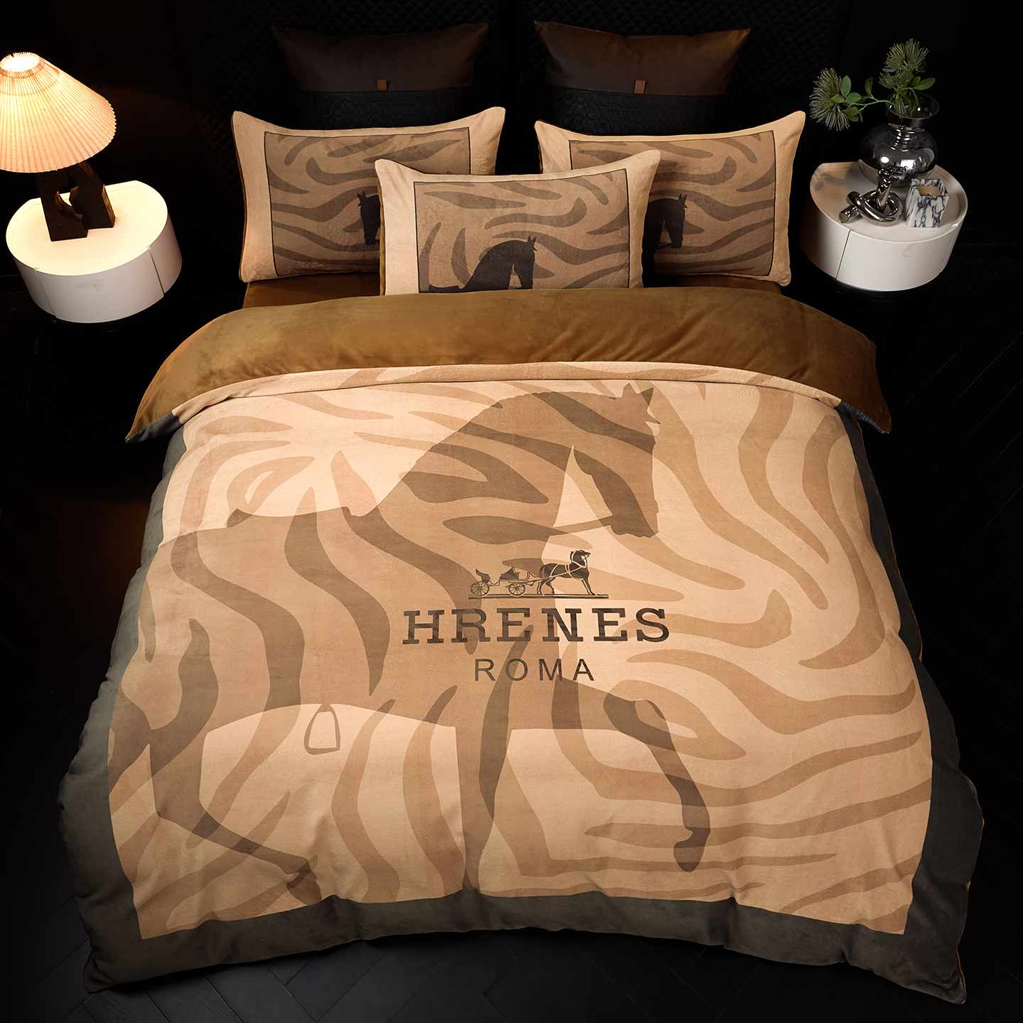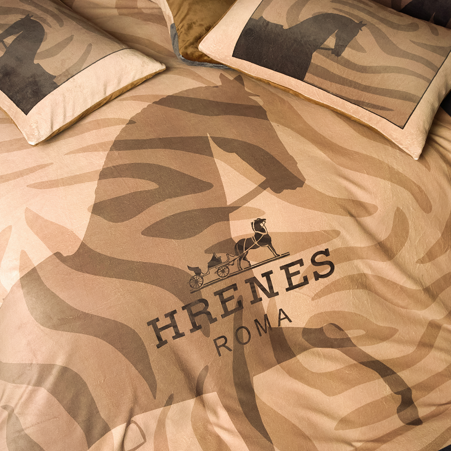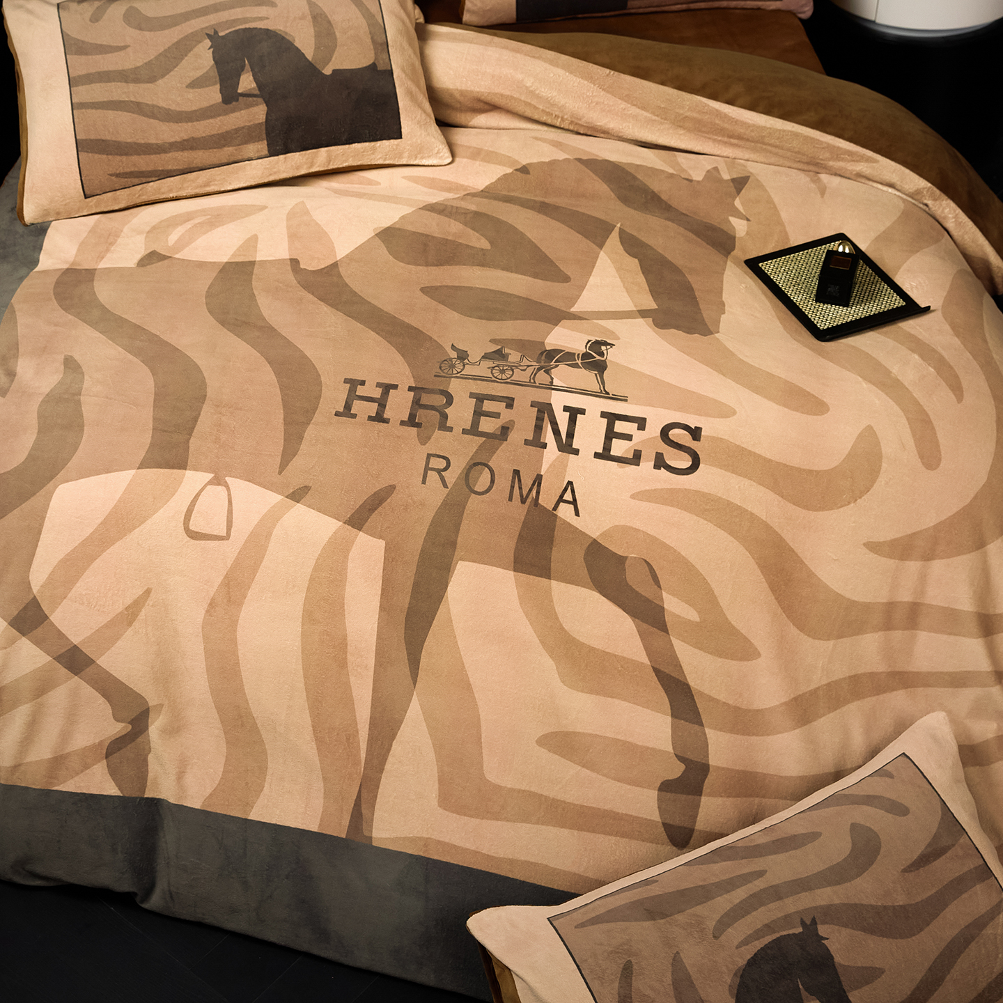 商品名称:新方向 2025新款240克A类全消光数码印花牛奶绒四件套-奥弗恩 咖啡