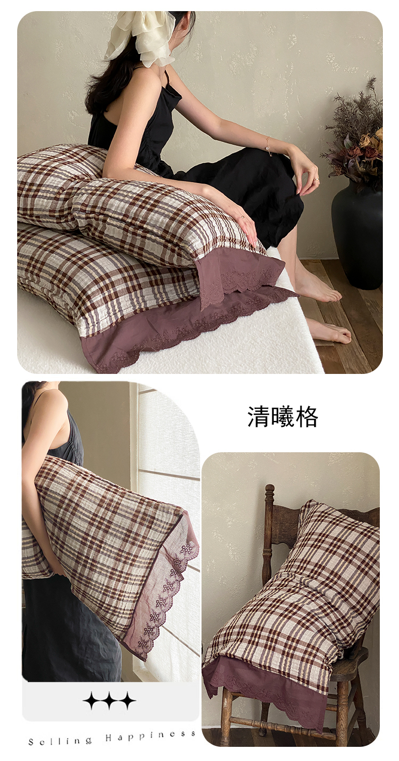 商品名称:麻依 2024新款法式四层纱布枕套花边款 清曦格