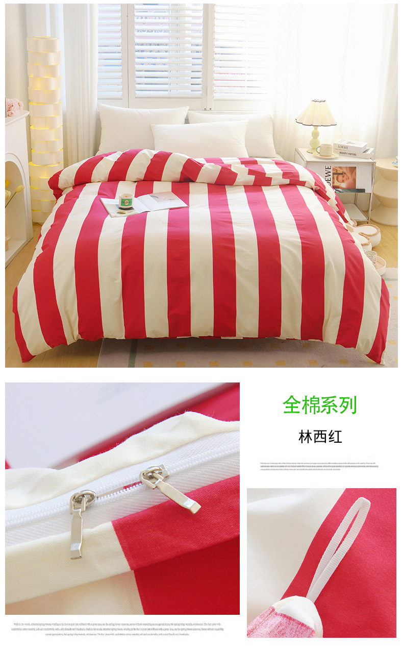 (总)启优 全棉被套纯棉被套小清新纯色全棉单件被套,林西红,秘境粉,秘境灰,林西绿,秘境黑,秘境绿,黑绿条纹,五彩世界,七彩条纹,黑白条纹,条纹紫绿