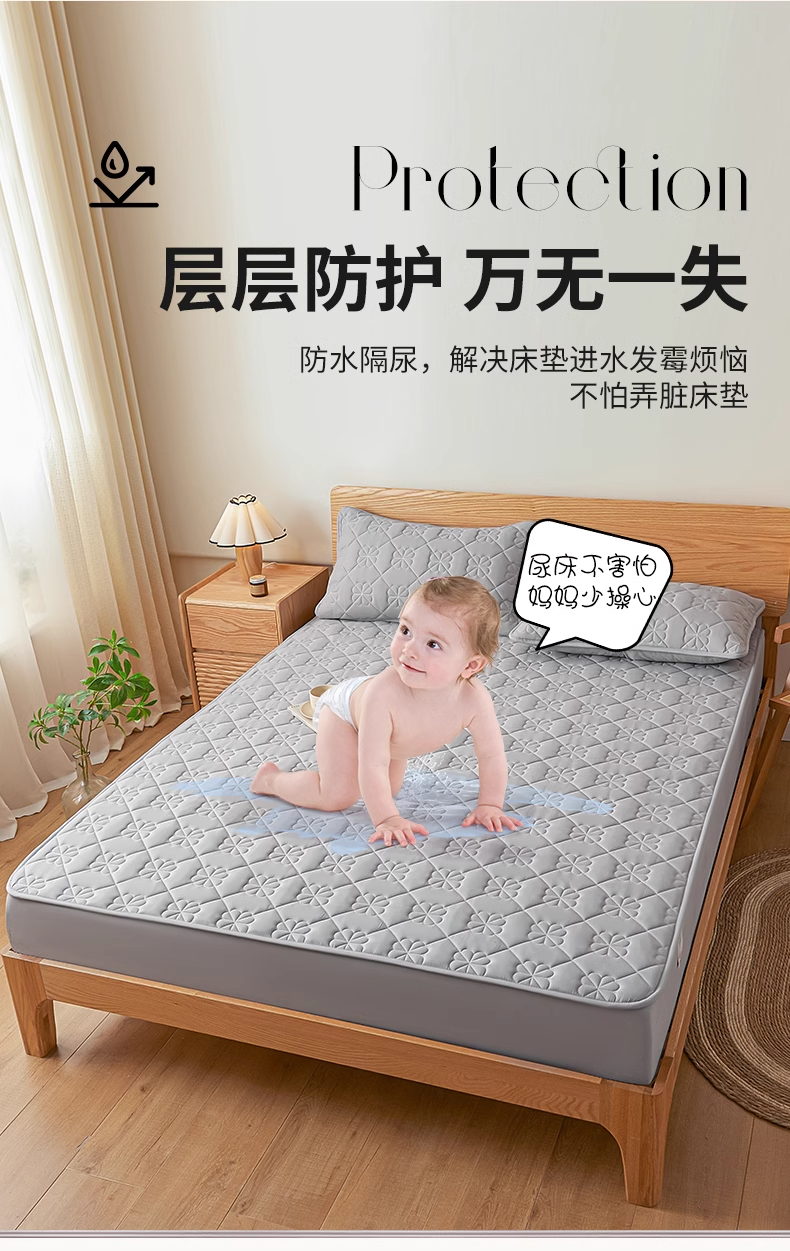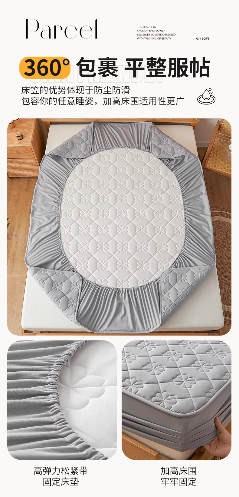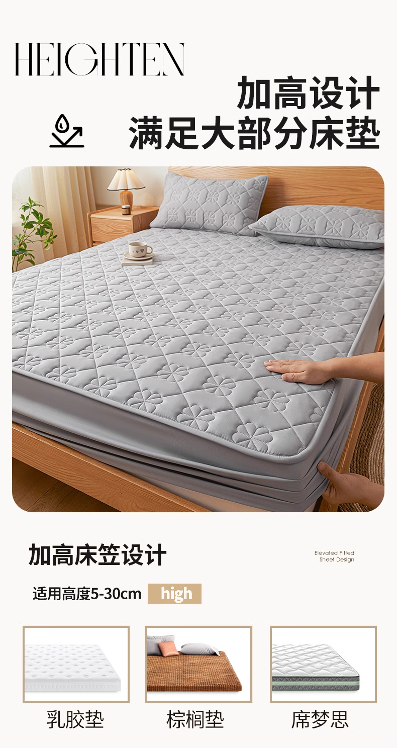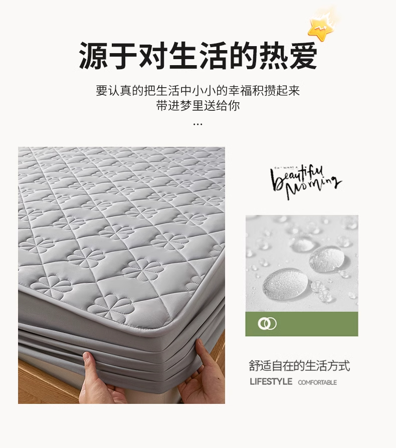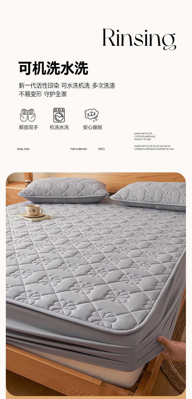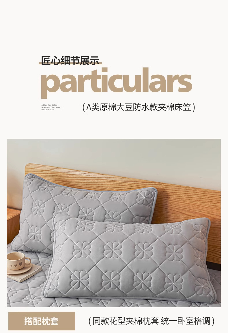 商品名称:维娜斯 2024新款防水夹棉床笠 四叶草浅灰