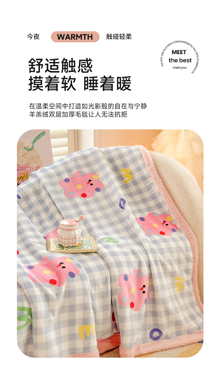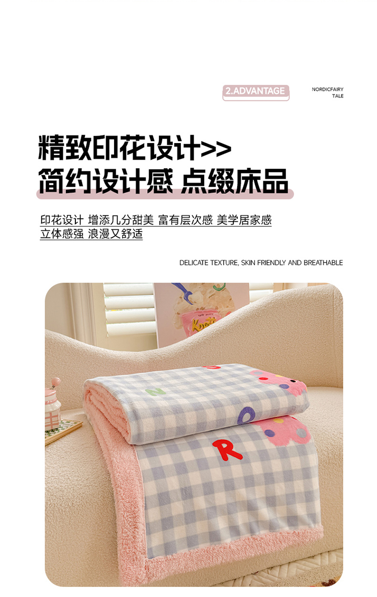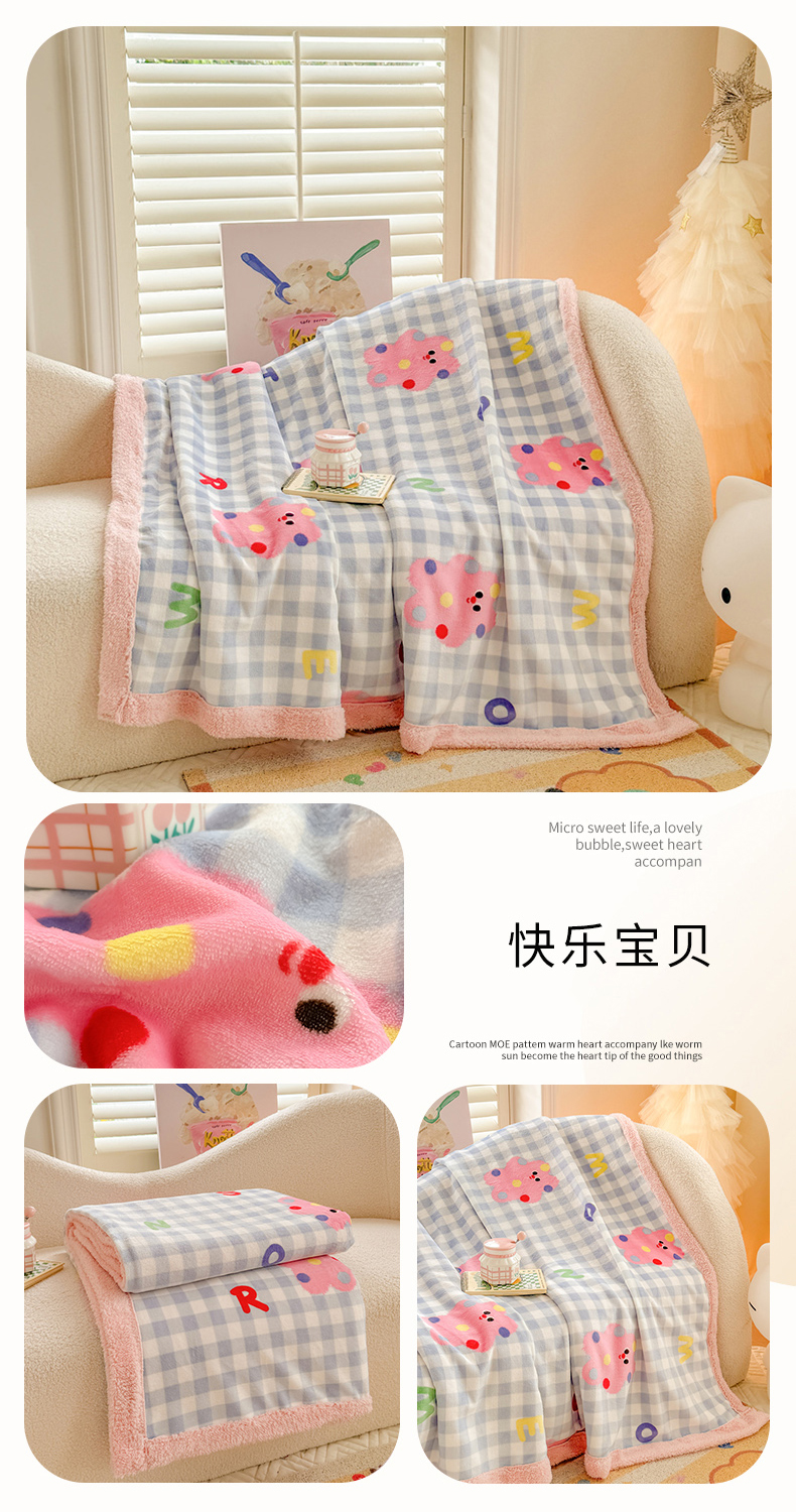 眷恋家纺 2024新款高克重牛奶绒印花羊羔绒毛毯毯子 快乐宝贝