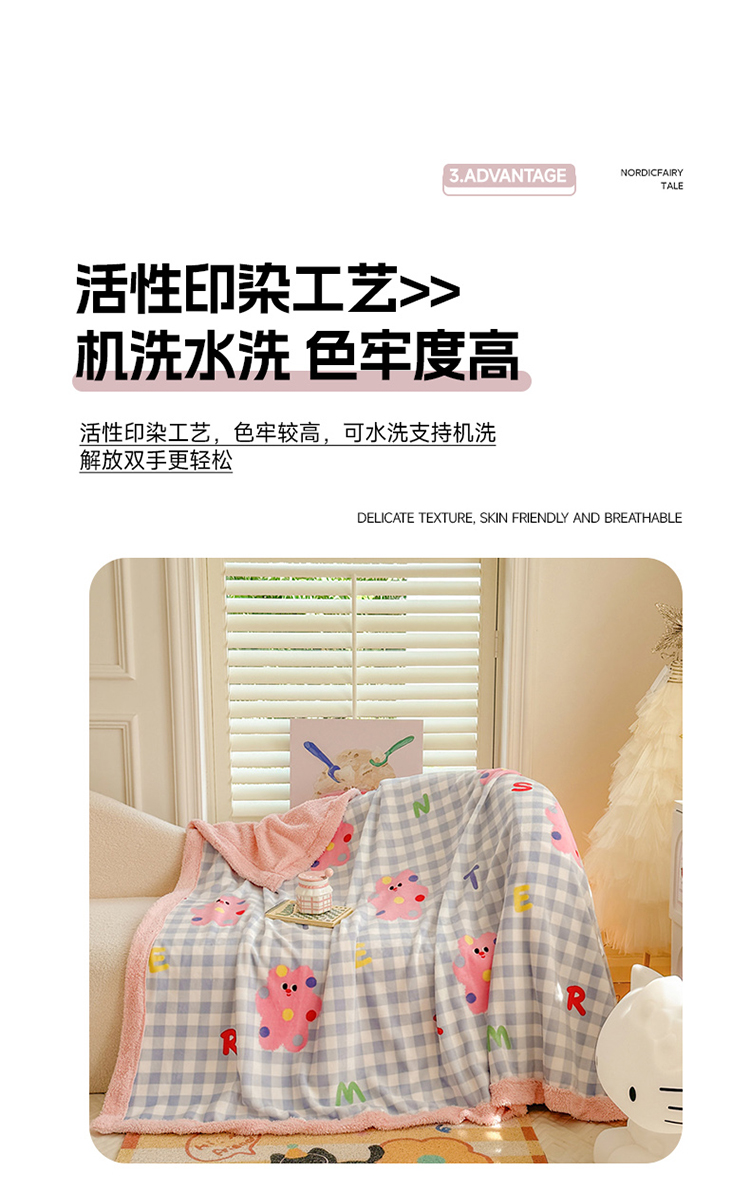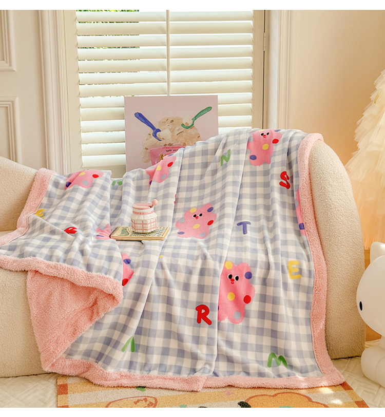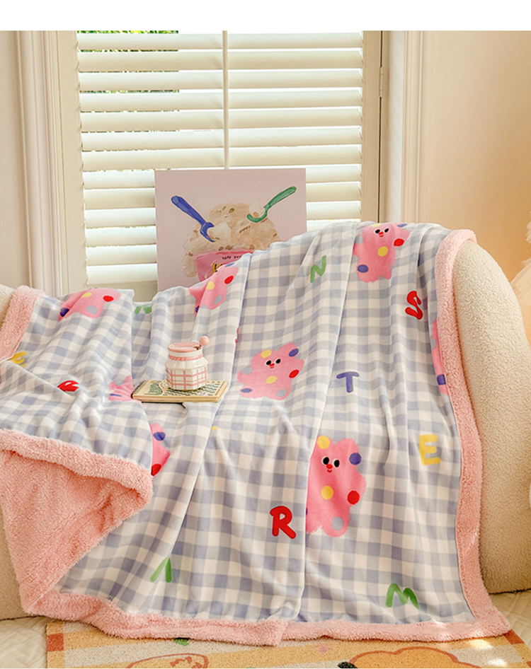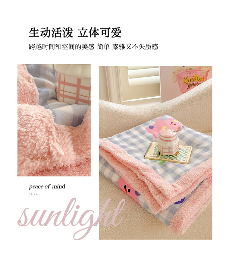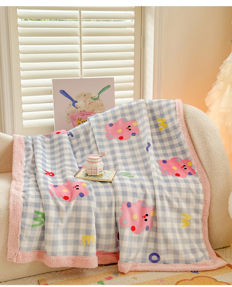 眷恋家纺 2024新款高克重牛奶绒印花羊羔绒毛毯毯子 快乐宝贝