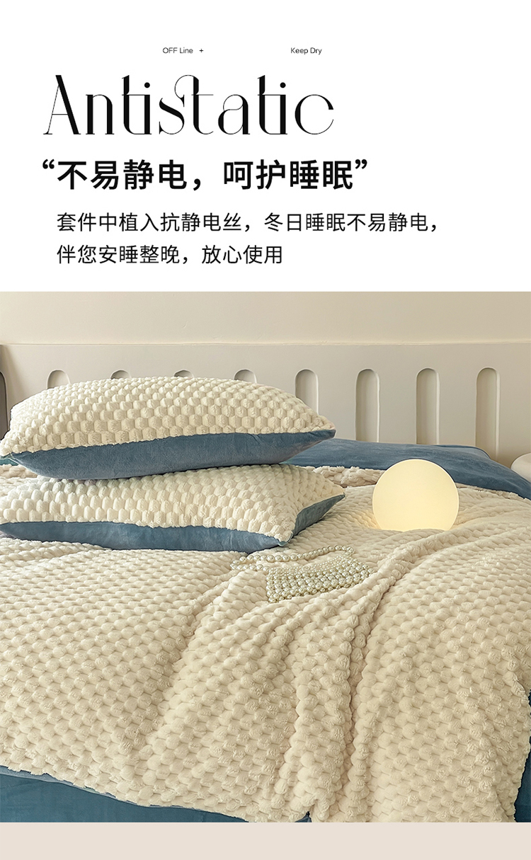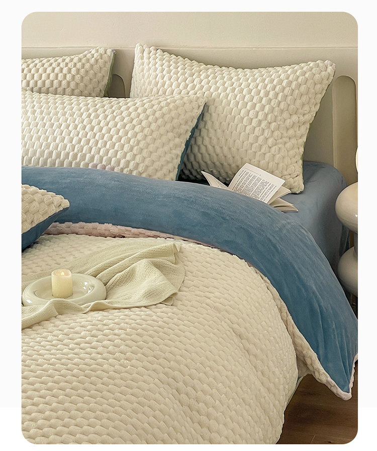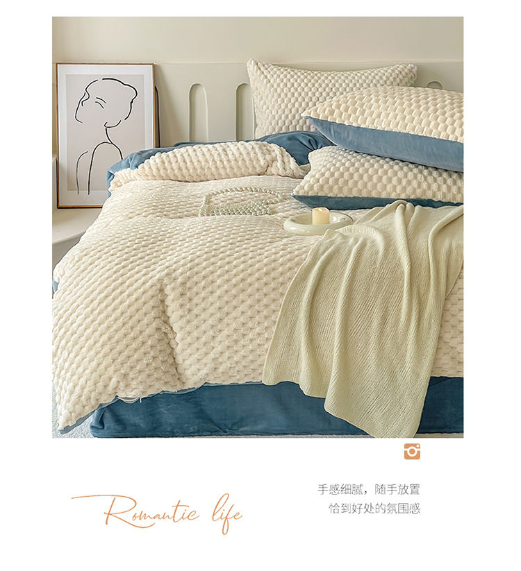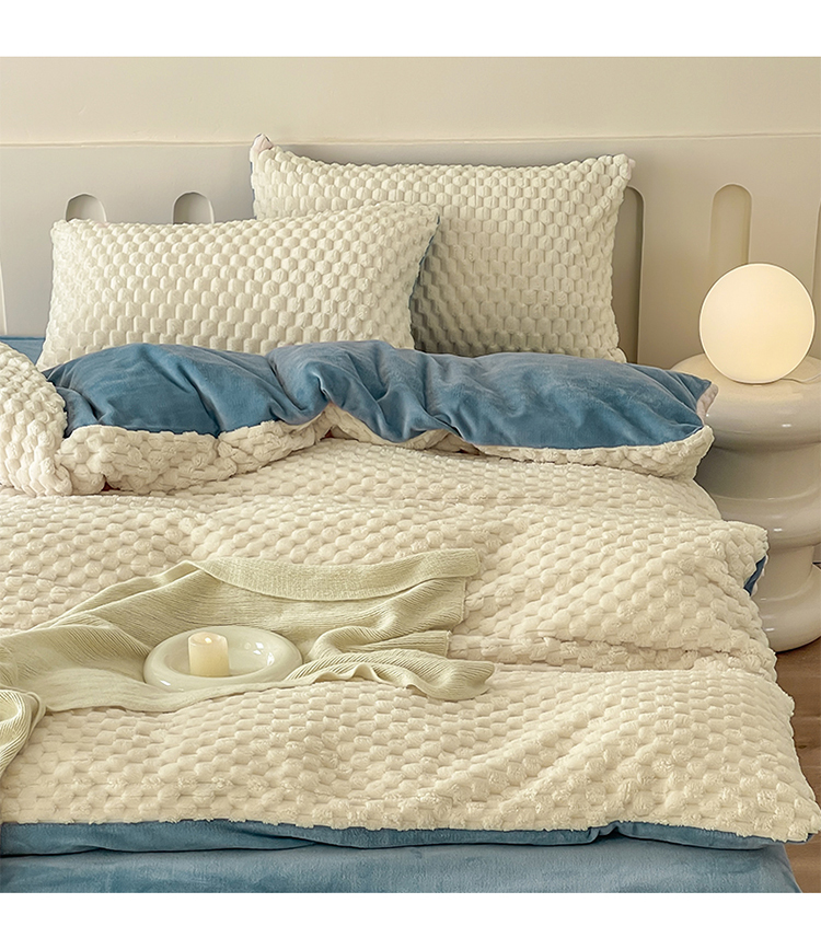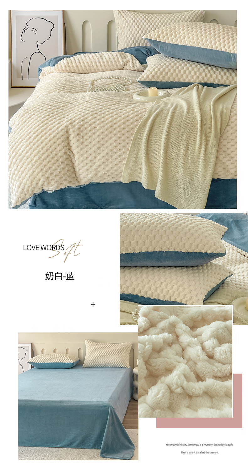当前位置: 91家纺网 > 商品网购 > 床品套件 > 四件套 > 牛奶绒四件套 > (买家秀爆款不断货)A类母婴级简约纯色双拼牛奶绒珊瑚绒四件套雪花绒四件套纯色金龟绒牛奶绒四件套 奶白-蓝
